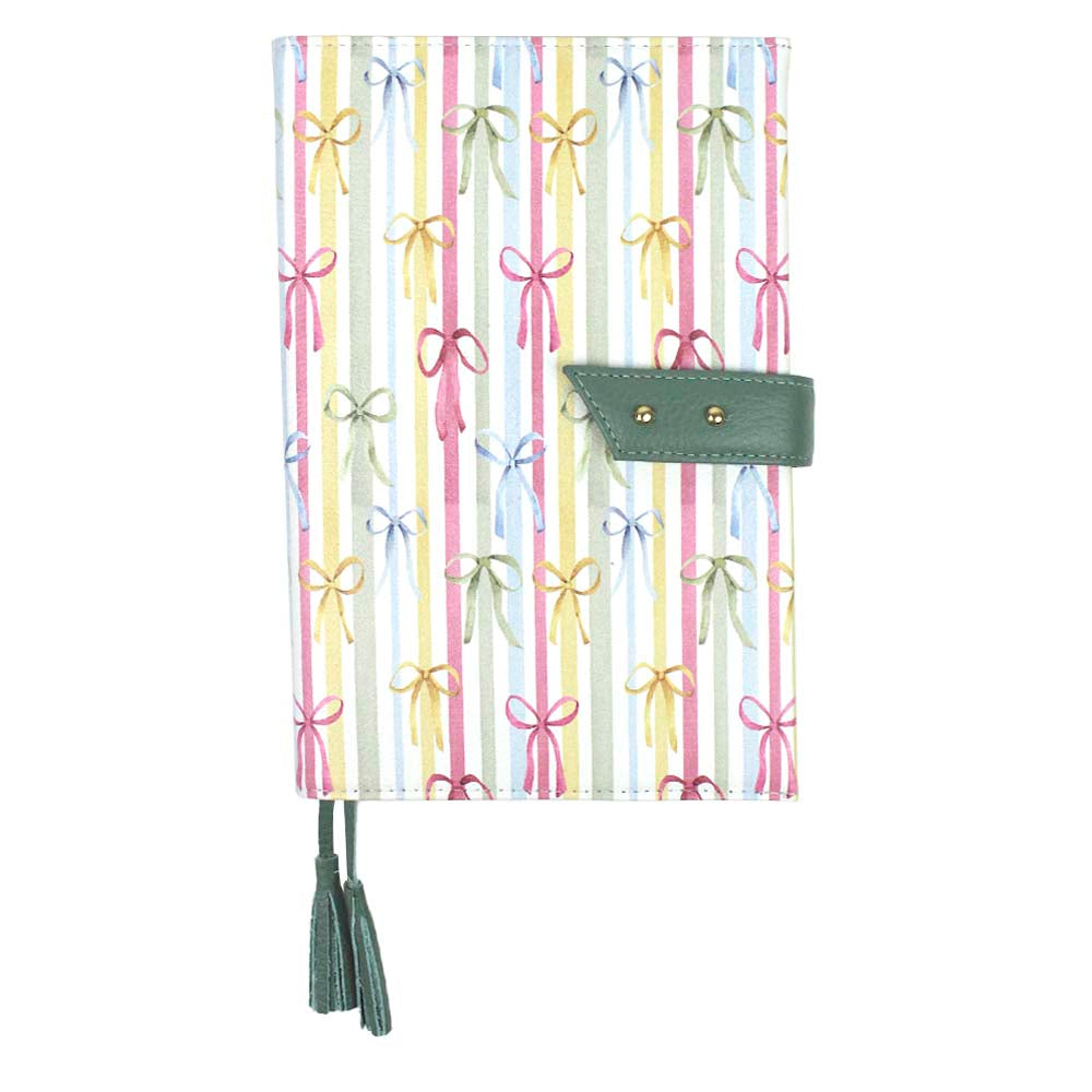 A capa de couro tem um fecho com 2 carrapetas, e um marcador de páginas duplo, com tasseis.