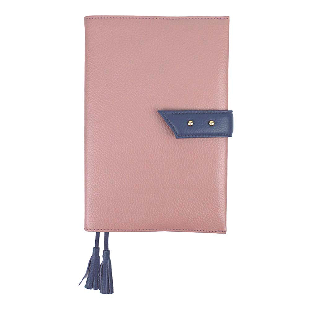 A capa de couro tem um fecho com 2 carrapetas, e um marcador de páginas duplo, com tasseis.
