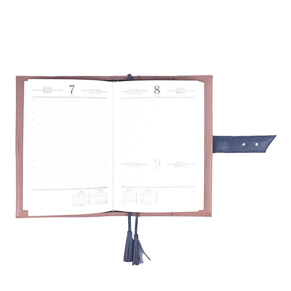 Nossa Agenda G com um toque de estilo a mais. A agenda da Merci conta com uma capa de couro 100% legítimo, e separada do miolo, assim, no ano seguinte, você pode adquirir somente o refil e reutilizar a sua capa personalizada!