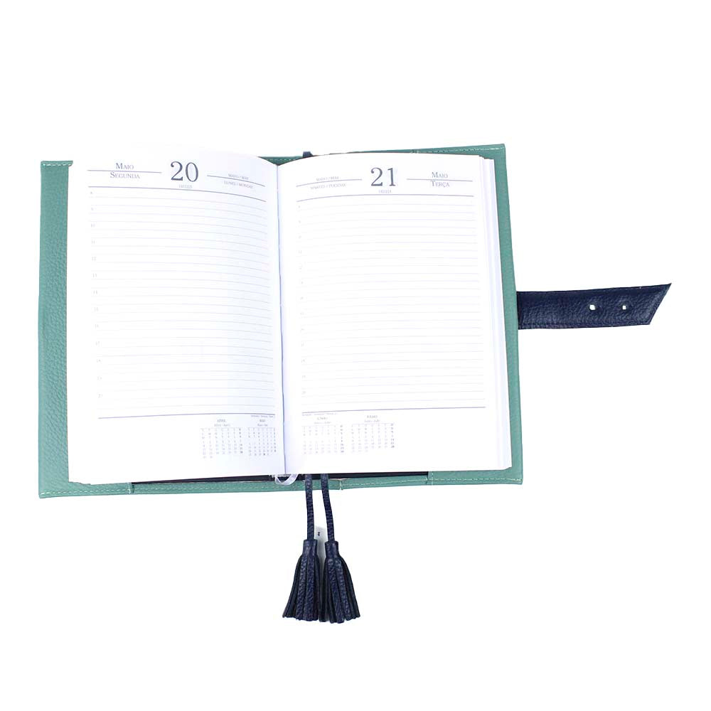 Nossa Agenda G com um toque de estilo a mais. A agenda da Merci conta com uma capa de couro 100% legítimo, e separada do miolo, assim, no ano seguinte, você pode adquirir somente o refil e reutilizar a sua capa personalizada!