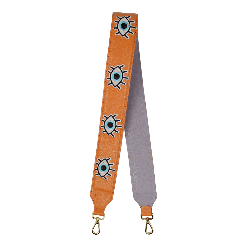 A alça olho grego traz além de boas energias, um ar moderno e colorido para seu look. Transforma aquela bolsa básica num acessório super diferente e divertido. É uma alça dupla face e assim, pode ser utilizada do lado bordado ou do lado liso. Pode ser personalizada com suas iniciais.