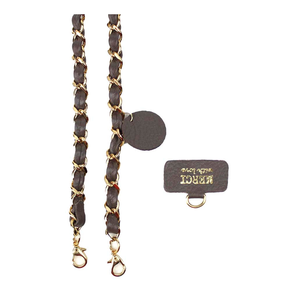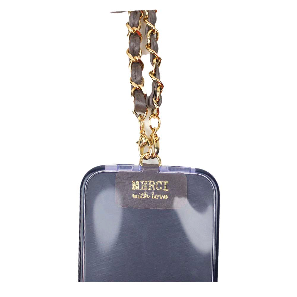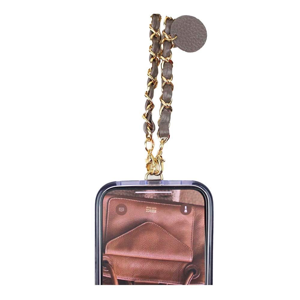 A alça de celular se adapta facilmente a diversas capinhas, e ainda é removível! Feita com metais de alta qualidade com banho em ouro e couro 100% legítimo.