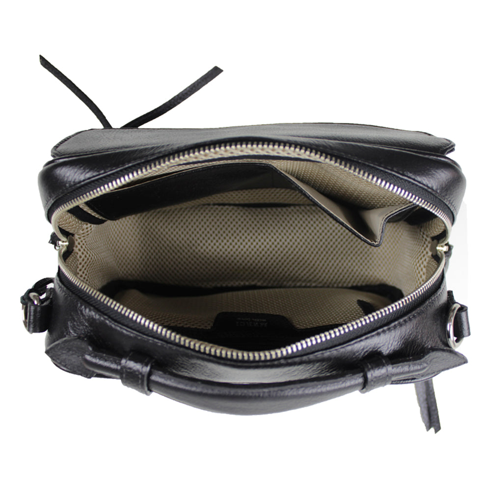 A bolsa Amelie foi desenvolvida para dar charme ao nosso dia a dia ou para nos acompanhar em eventos mais especiais! Ideal para levar para o trabalho, reuniões, viagens, happy hour, passeios, festinhas! É super compacta, mas possuiu um tamanho interno excelente! Tem bolso externo grande e compartimentos internos com zíper. Acompanha alça removível tricolor, que pode ser feita na combinação que você escolher. É toda feita em couro 100% legítimo, e forrada com nossa tela especial space. Possui internamente na parte inferior uma camada de neoprene que a deixa mais estruturada e protege os objetos carregados nela. Pode ser personalizada com seu nome ou com suas iniciais.