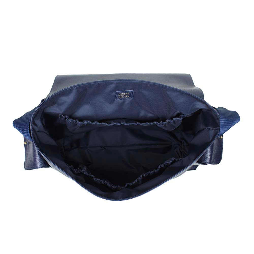A bolsa conta da com diversos compartimentos: na parte interna existem 3 grandes bolsos que permitem guardar desde fraldas até mamadeiras. A parte externa também conta com 3 bolsos, sendo 2 laterais e 1 na parte de trás, todos de fácil manuseio, ideais para guardar objetos de necessidade rápida, como chupetas, mamadeiras, lencinhos.