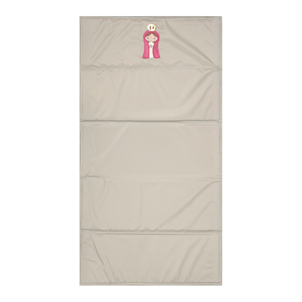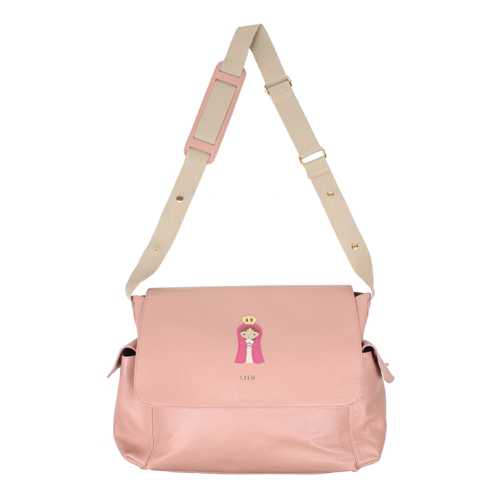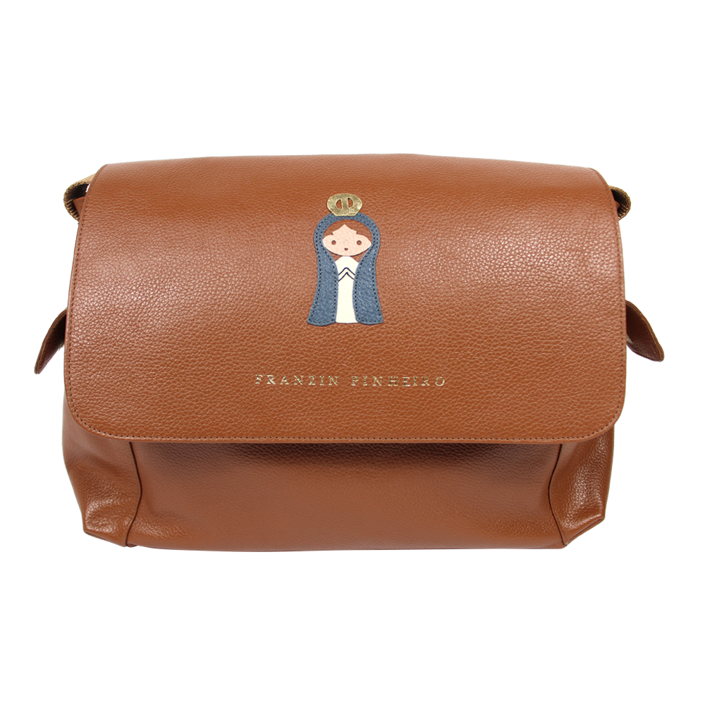 A bolsa ainda acompanha trocador com o tema escolhido, confeccionado com o mesmo material impermeável do forro da bolsa, de fácil limpeza. O trocador é dobrável e cabe com perfeição no fundo da bolsa, sem comprometer o espaço interno.