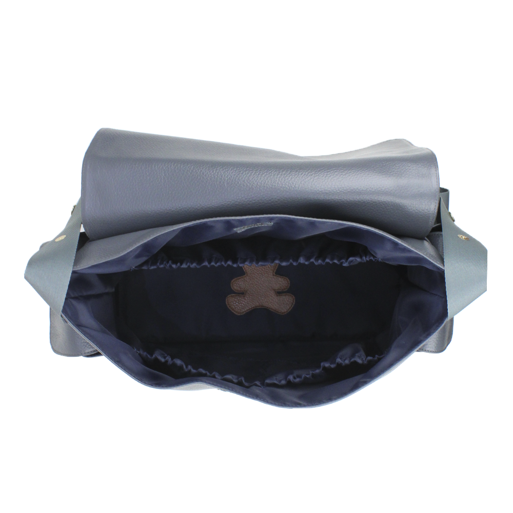 A bolsa ainda acompanha trocador com o tema escolhido, confeccionado com o mesmo material impermeável do forro da bolsa, de fácil limpeza. O trocador é dobrável e cabe com perfeição no fundo da bolsa, sem comprometer o espaço interno.
