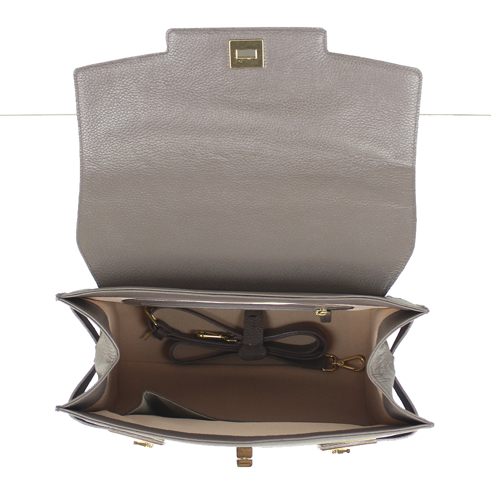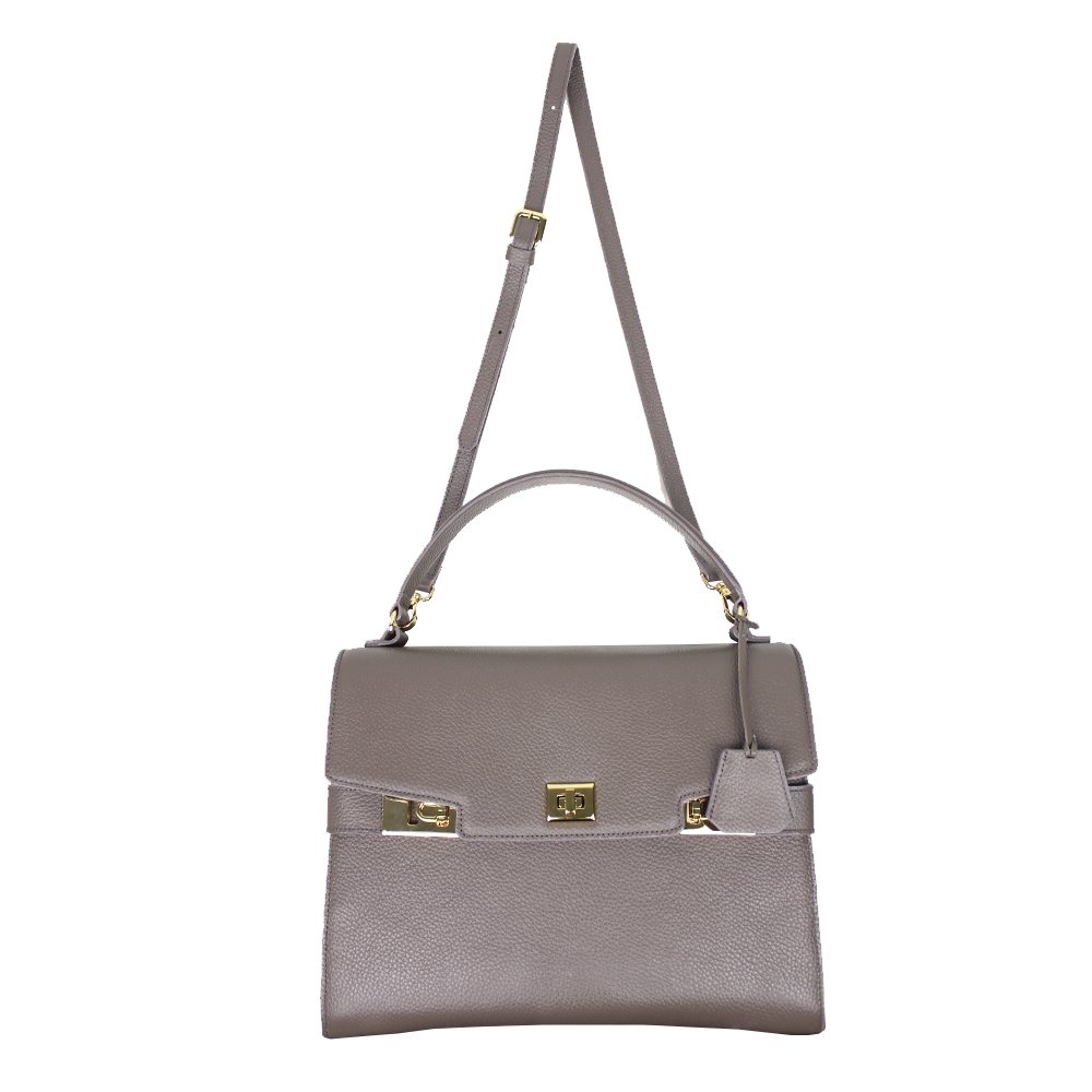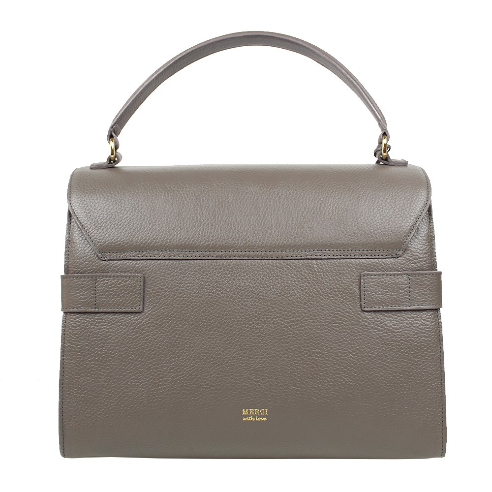 A Bolsa Gabrielle é um dos best sellers da Merci. Seu desenho é muito sofisticado, com fivela em metal e detalhes em couro e metal. Seu espaço interno é excelente o que a faz uma grande opção para o dia-a-dia. A Gabrielle tem uma alça de mão e também vem com uma alça removível que pode ser usada no ombro e também modo carteiro. Pode ser personalizada com suas iniciais.