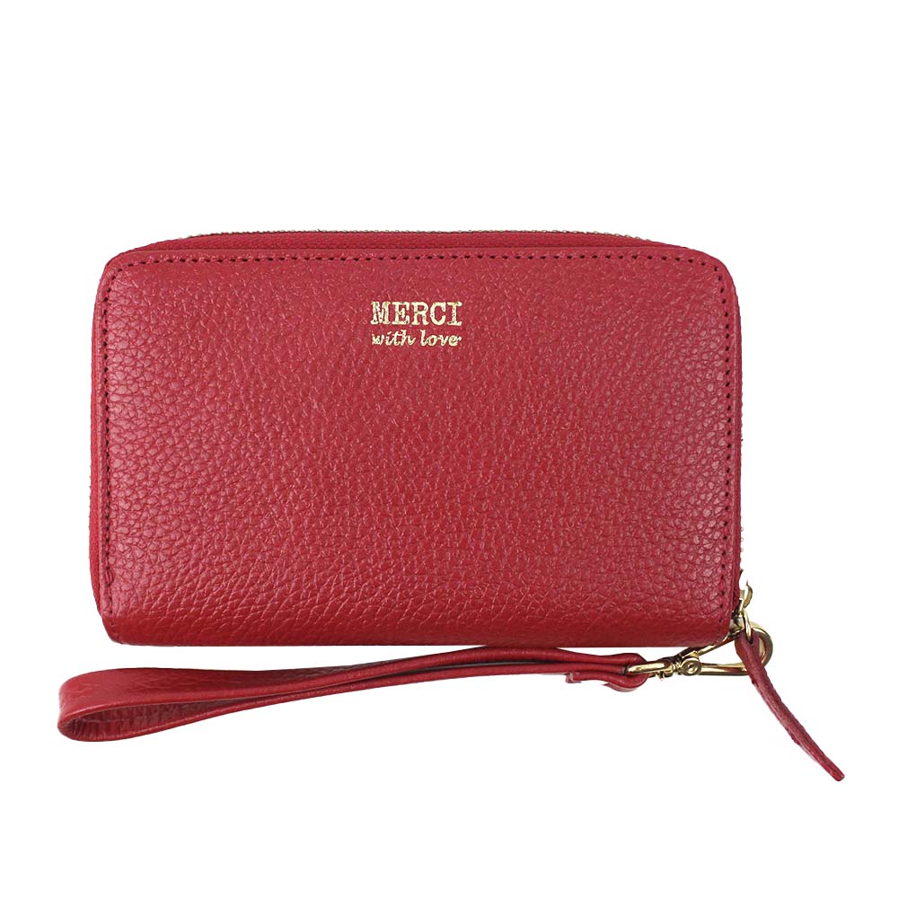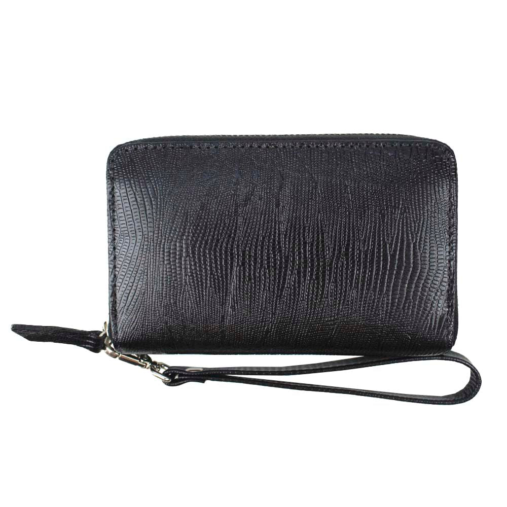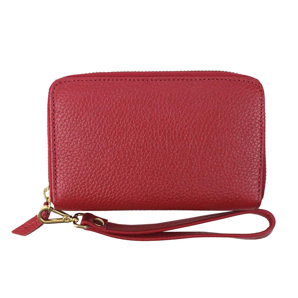Carteira de dinheiro média em couro com zíper. Possui repartições para dinheiro e cartões. Com alça em couro fica fácil e prática de ser carregada.
