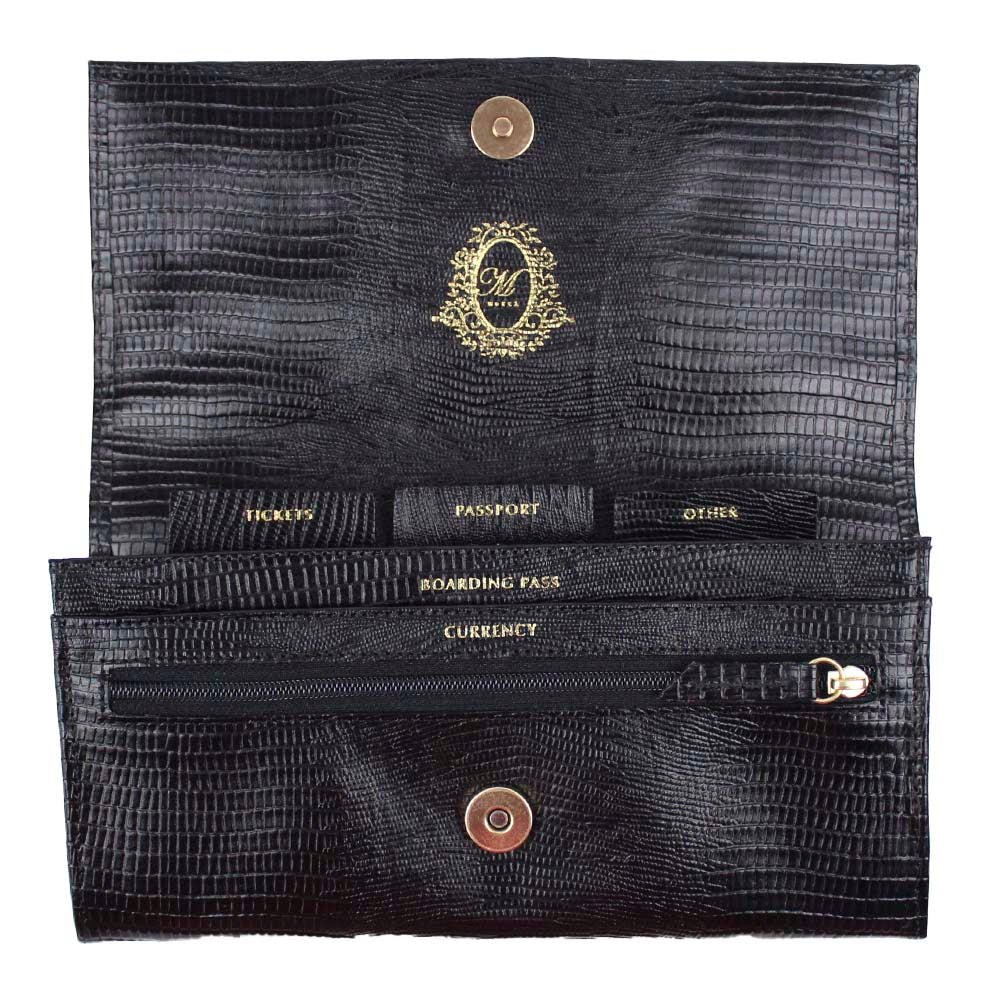 Carteira em couro com divisórias para organizar todos os seus documentos de viagem. Possui repartições para passaporte, tickets/ passagens, dinheiro e outros documentos. Não há melhor opção para quem gosta de viajar com tudo organizado.