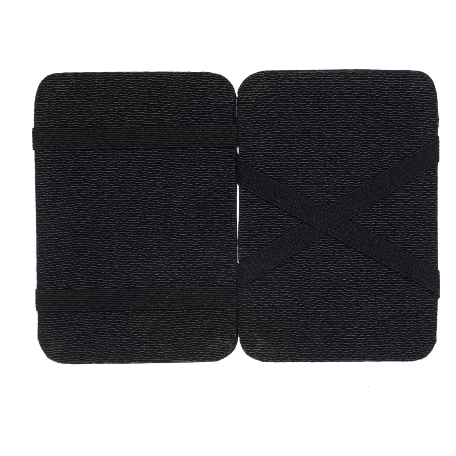 Carteira de dinheiro em couro com elástico interno para prender as notas a cada virada da carteira.