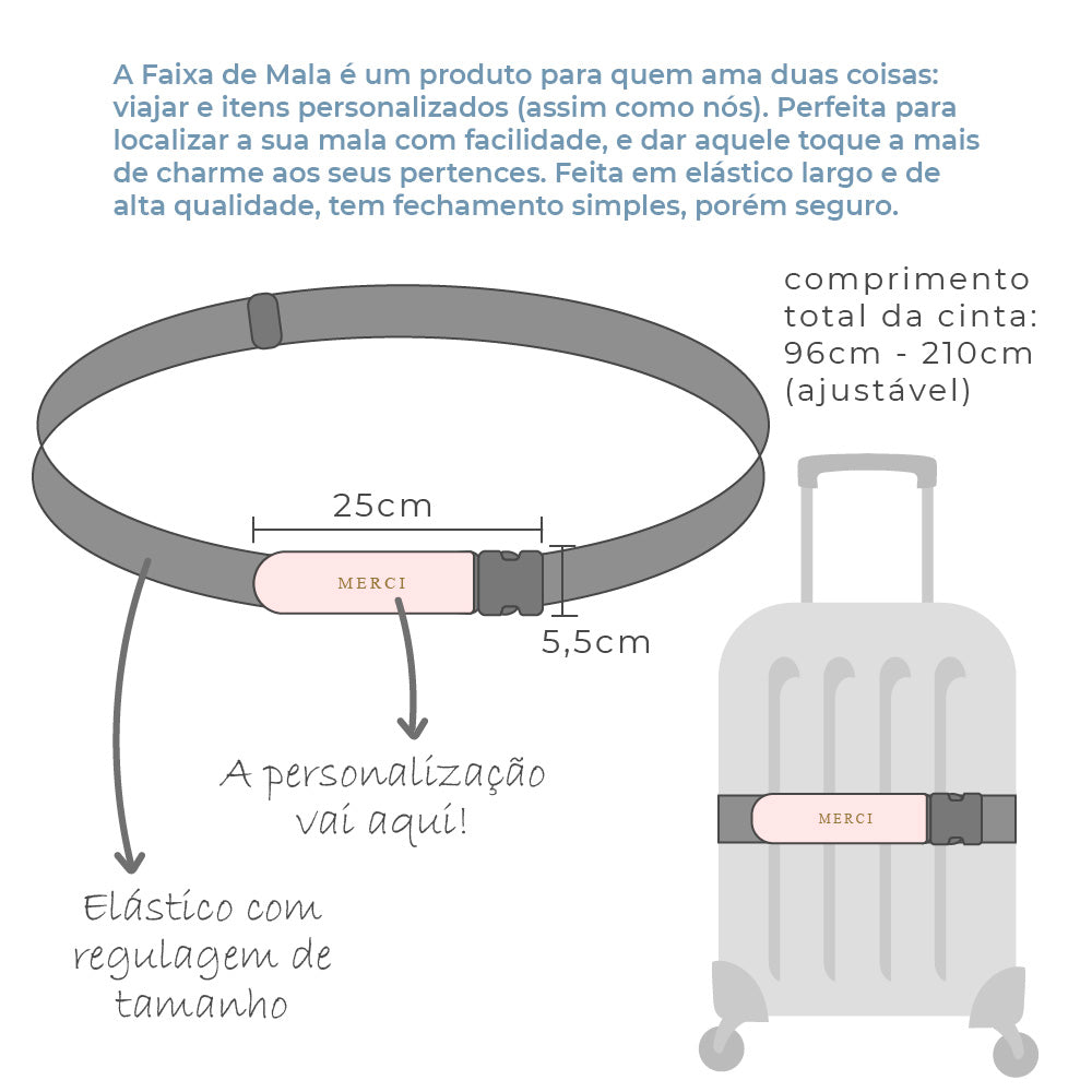 Feita com elástico reforçado e fecho seguro, ela é regulável, podendo ser adaptada em diferentes tipos de mala e bagagem.