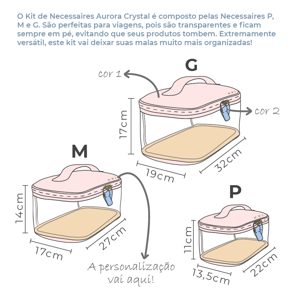 Uma necessaire super versátil, que pode te ajudar a organizar seu closet, sua mala, seus acessórios… A Necessaire Crystal Aurora é feita em Couro 100% Legítimo e Vinil, permitindo que você veja o que está guardado sem precisar abri-la e garantindo alta durabilidade. Ela conta com alça, para ajudar no transporte e manuseio, fechamento total em zíper, e um ótimo tamanho, possibilitando uma infinidade de opções de uso.