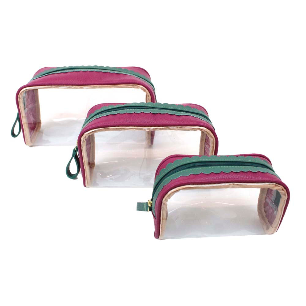 A Necessaire Betina além de linda é super prática! Conta com a versatilidade do vinil, que nos permite ver o que está dentro, e com sua vantagem de ser um material extremamente leve e resistente. Super fácil de limpar, sendo ideal para guardar maquiagens, cremes, protetor solar, shampoos, condicionadores. Pode ainda ser personalizada com suas iniciais. Disponível nos tamanhos: P, M, G.