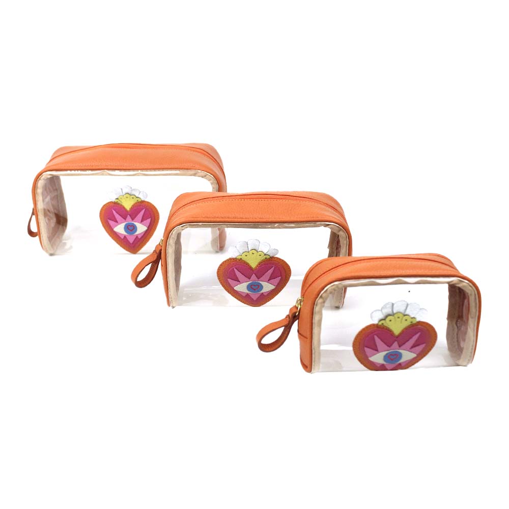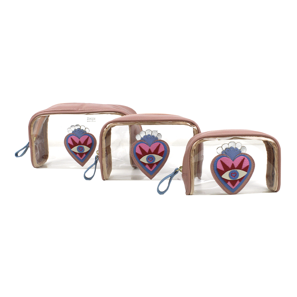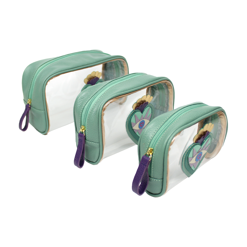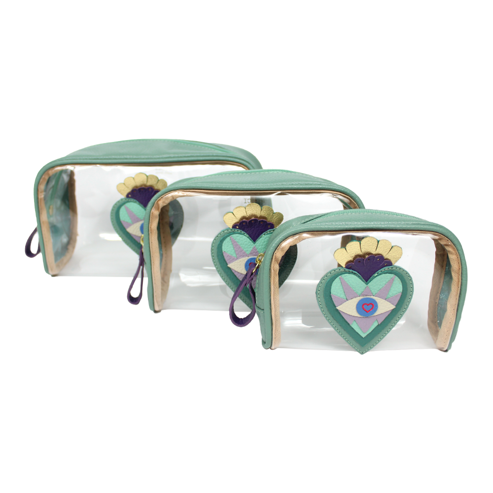 A Necessaire Betina além de linda é super prática! Conta com a versatilidade do vinil, que nos permite ver o que está dentro, e com sua vantagem de ser um material extremamente leve e resistente. Super fácil de limpar, sendo ideal para guardar maquiagens, cremes, protetor solar, shampoos, condicionadores. Pode ainda ser personalizada com suas iniciais. Disponível nos tamanhos: P, M, G.