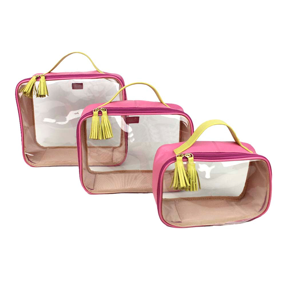 O kit da necessaire Crystal é composto por 3 necessaires feitas em couro 100% legítimo e vinil transparente. São ideais para quem gosta de viajar com as malas bem orgzanizadas. São leves e super práticas! E ainda podem ser personalizadas com suas iniciais.