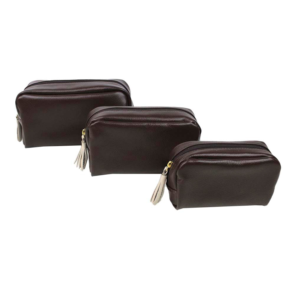 São todas feitas em couro 100% legítimo e forrada em vinil o que permite a limpeza fácil e a torna uma necessaire super pratica e versátil. Para completar seu charme ela vem com tassel colorido em couro e pode ser personalizada com suas iniciais.