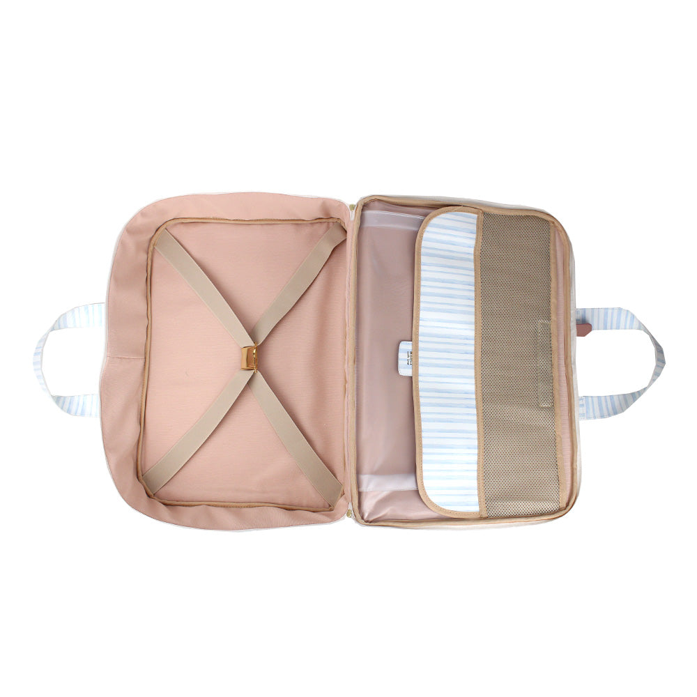 Cheia de divisórias e compartimentos, ela é um acessório indispensável para nossos pequenos viajantes e também para levar pra maternidade.