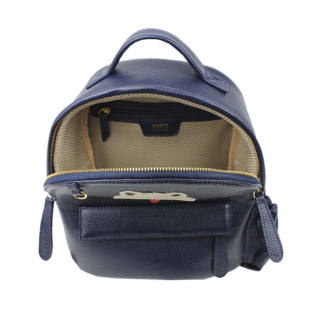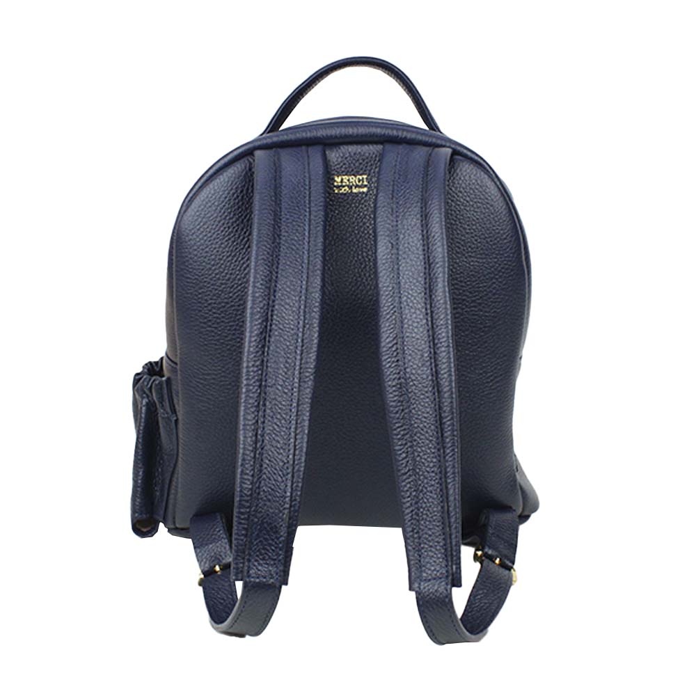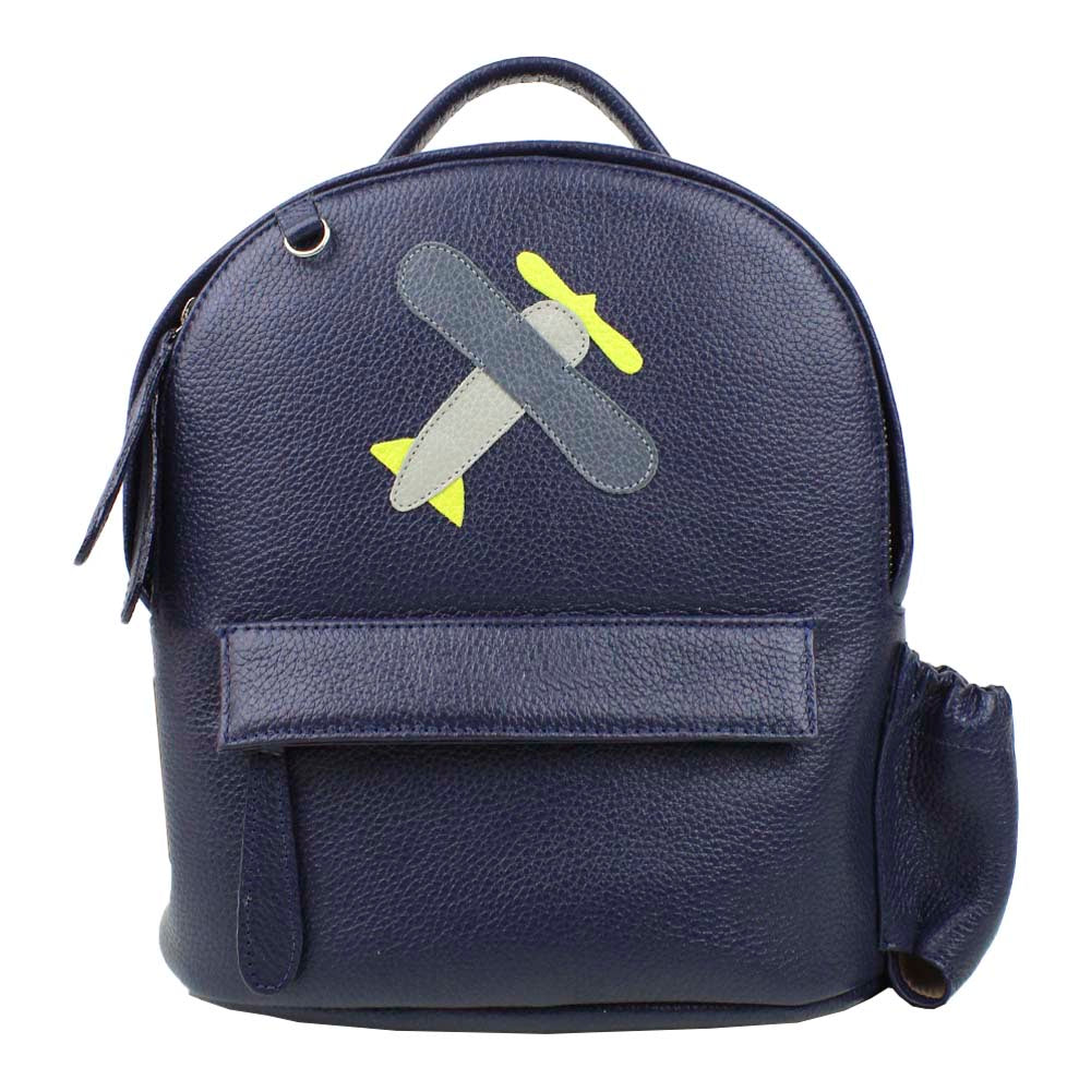 Possui alças reguláveis, é toda feita em couro 100% legítimo e pode ser personalizada com as iniciais da criança. Acompanha mini trocador com tema pespontado.
