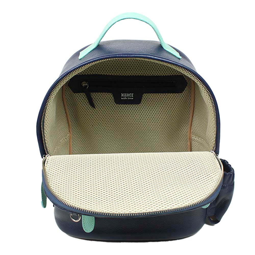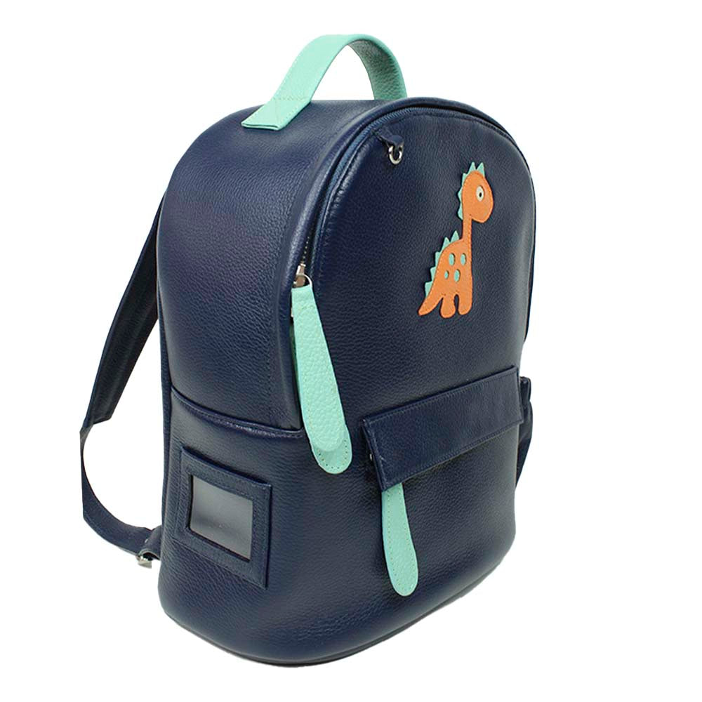 Possui alças reguláveis, é toda feita em couro 100% legítimo e pode ser personalizada com as iniciais da criança. Acompanha mini trocador com tema pespontado.