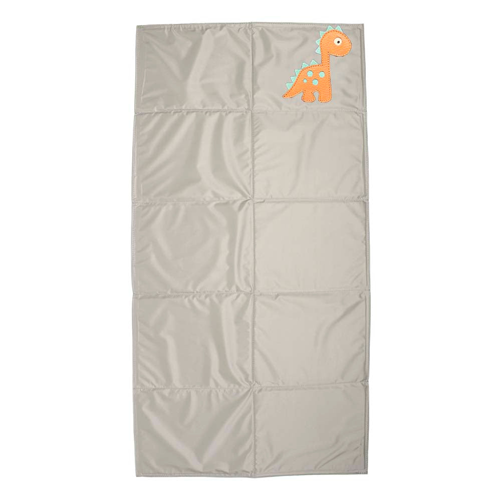 Externamente possui bolso com zíper, compartimento para garrafinha ou mamadeira, local para identificação (para dados da criança), argolinha de metal para prender recipiente de álcool em gel ou algo que seja também útil para a criança ou de uso constante dela.