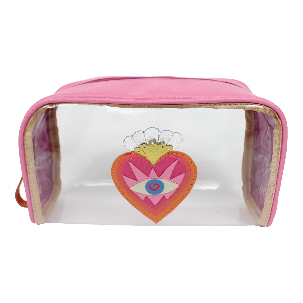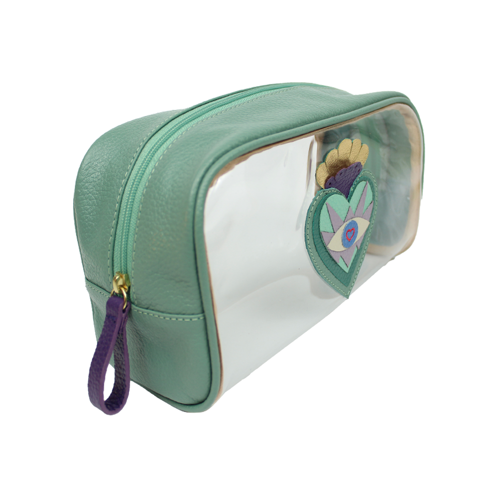 A Necessaire Betina além de linda é super prática! Conta com a versatilidade do vinil, que nos permite ver o que está dentro, e com sua vantagem de ser um material extremamente leve e resistente. Super fácil de limpar, sendo ideal para guardar maquiagens, cremes, protetor solar, shampoos, condicionadores. Pode ainda ser personalizada com suas iniciais. Disponível nos tamanhos: P, M, G.