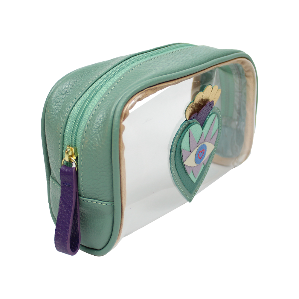 A Necessaire Betina além de linda é super prática! Conta com a versatilidade do vinil, que nos permite ver o que está dentro, e com sua vantagem de ser um material extremamente leve e resistente. Super fácil de limpar, sendo ideal para guardar maquiagens, cremes, protetor solar, shampoos, condicionadores. Pode ainda ser personalizada com suas iniciais. Disponível nos tamanhos: P, M, G.
