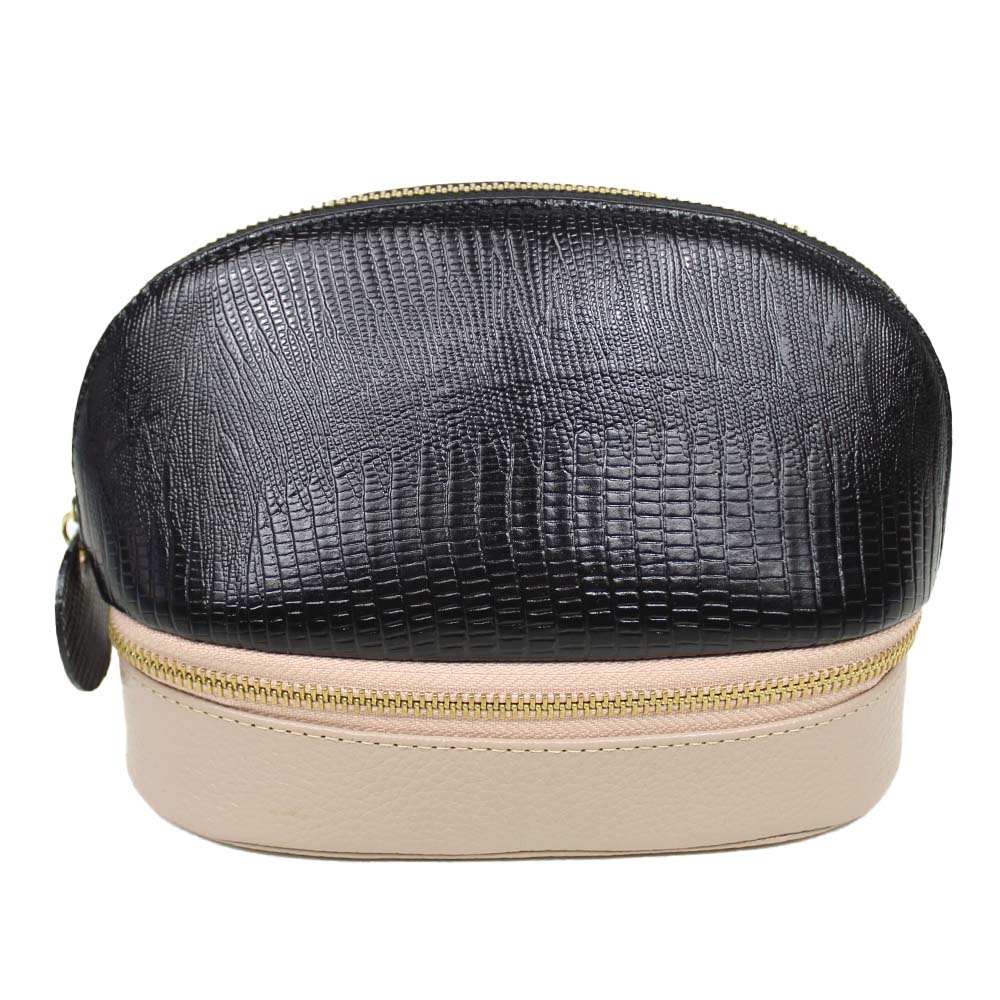 A necessaire Charlotte é uma necessaire dupla. Na parte inferior é um porta jóias, com espaço pra brincos, colares, pulseiras e anéis. Já a parte superior é uma necessaire para guardar cosméticos, maquiagens, remédios, pequenos objetos de acordo com sua necessidade. É ideal para mala de mão ou bolsa nas viagens, em que precisamos carregar conosco objetos de valor e de uso diário. É toda feita em couro 100% legítimo e forrada com nossa tela space. Pode ser personalizada com suas iniciais.