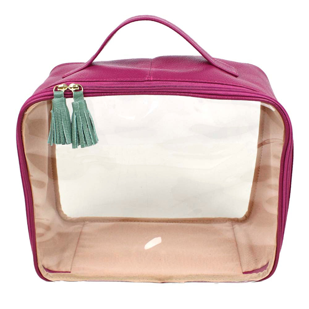 A necessaire Crystal é feita em couro 100% legítimo e vinil transparente. Ideal para quem gosta de viajar com as malas bem organizadas. Leves e super prática! E ainda pode ser personalizada com suas iniciais.
