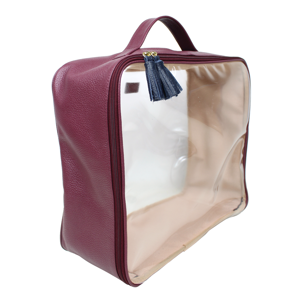 A necessaire Crystal é feita em couro 100% legítimo e vinil transparente. Ideal para quem gosta de viajar com as malas bem orgzanizadas. Leves e super prática! E ainda pode ser personalizada com suas iniciais.