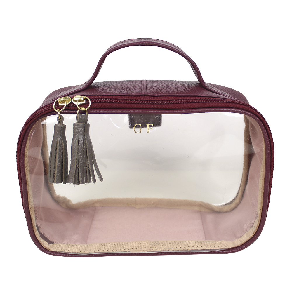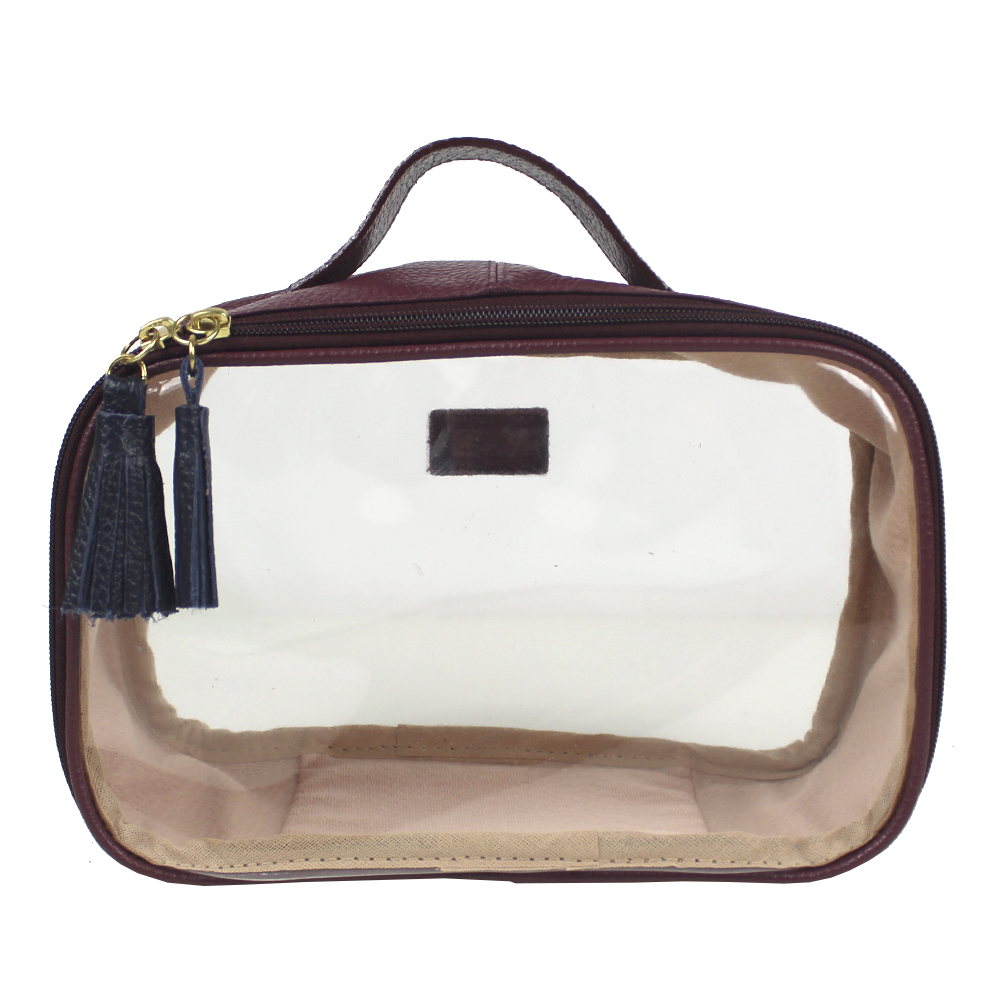A necessaire Crystal é feita em couro 100% legítimo e vinil transparente. Ideal para quem gosta de viajar com as malas bem orgzanizadas. Leves e super prática! E ainda pode ser personalizada com suas iniciais.