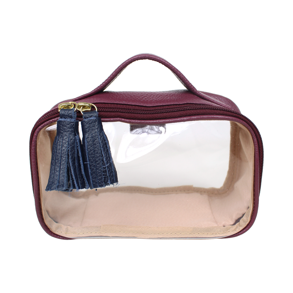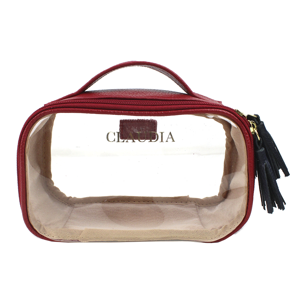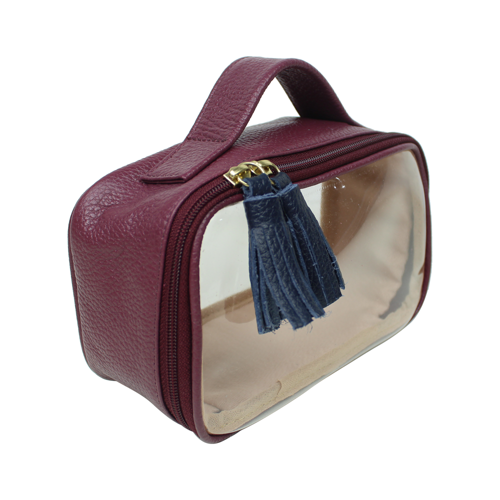 A necessaire Crystal é feita em couro 100% legítimo e vinil transparente. Ideal para quem gosta de viajar com as malas bem organizadas. Leves e super prática! E ainda pode ser personalizada com suas iniciais.