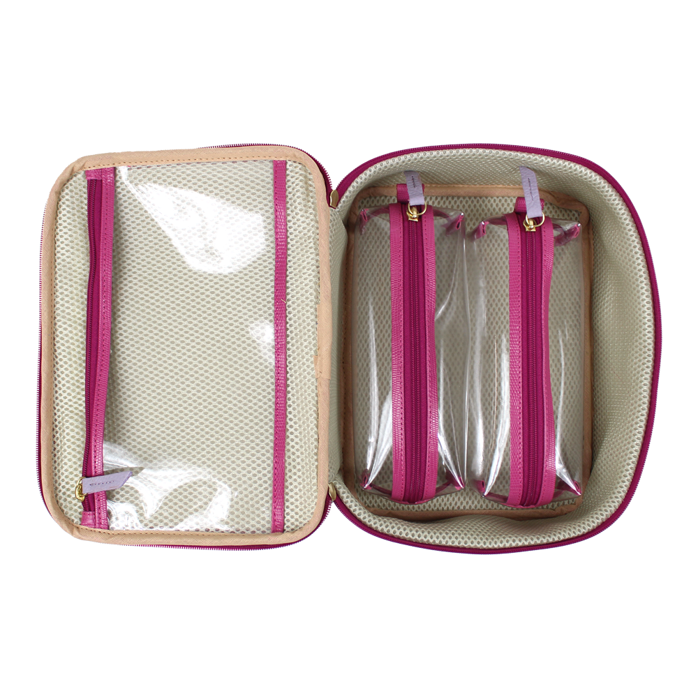 Acompanha duas necessaires em crystal (vinil) para que possa separar esmaltes de alicates, espátulas, lixas, cremes! Ainda vem com um bolso pra que possa guardar o que mais achar necessário. É toda feita em