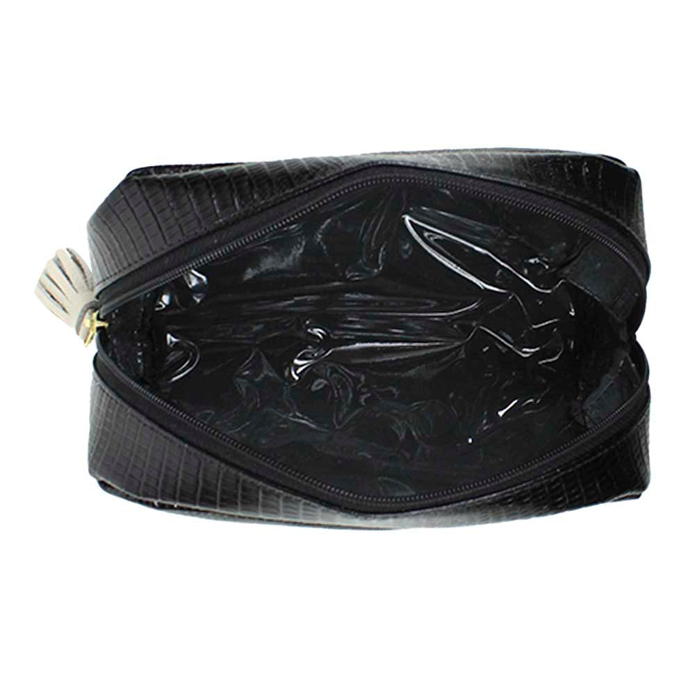 A necessaire Julie é toda feita em couro 100% legítimo e forrada em vinil o que permite a limpeza fácil e a torna uma necessaire super pratica e versátil. Para completar seu charme ela vem com tassel colorido em couro e pode ser personalizada com suas iniciais.