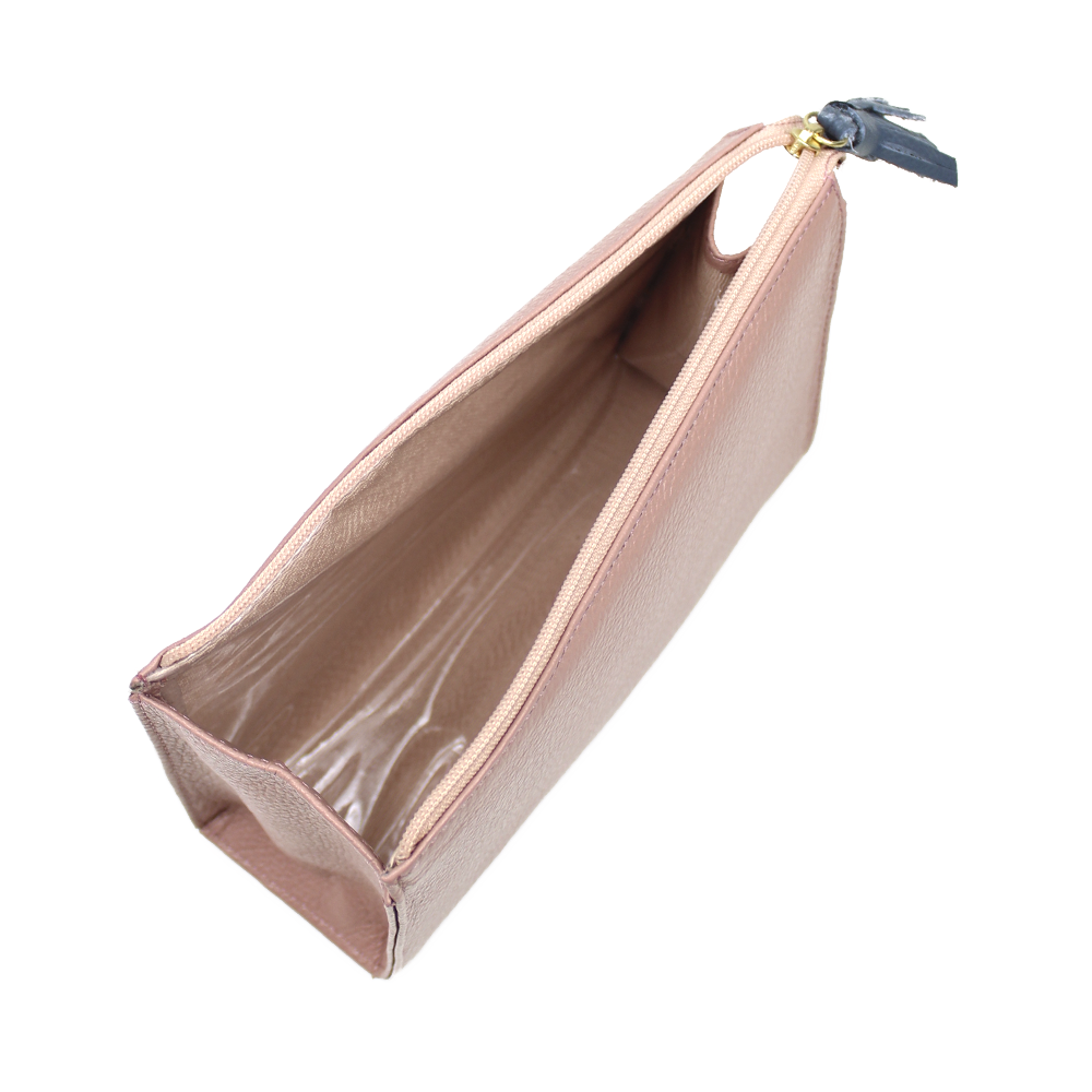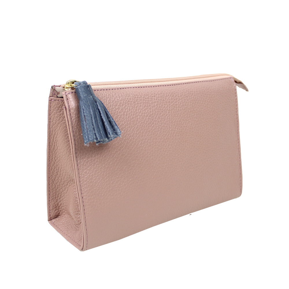 A Necessaire Louise é bem estruturada, forrada em vinil para facilitar a limpeza e pode ser utilizada para diversas finalidades. Fechada em zíper, com pendente de tassel, ela, além do forro final de vinil, também conta com uma camada de gorgurinho especial, resultando em uma necessaire de alta qualidade e que garante proteção aos seus pertences.