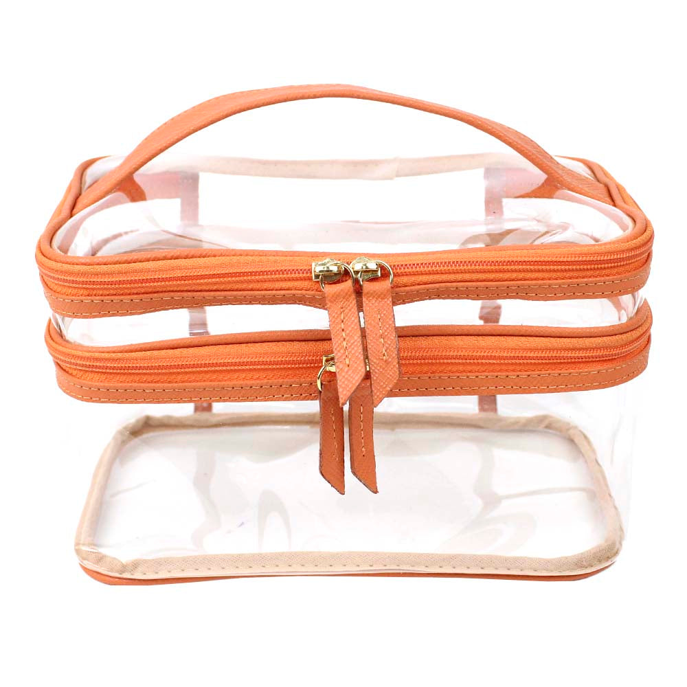 A Necessaire Make Dupla conta com dois compartimentos com abertura total em zíper, facilitando o acesso a todos os produtos que você estiver levando. Confeccionada em vinil de alta qualidade, ela é super fácil de limpar e ainda possibilita que você veja os itens guardados em cada compartimento, sem a necessidade de abri-la.