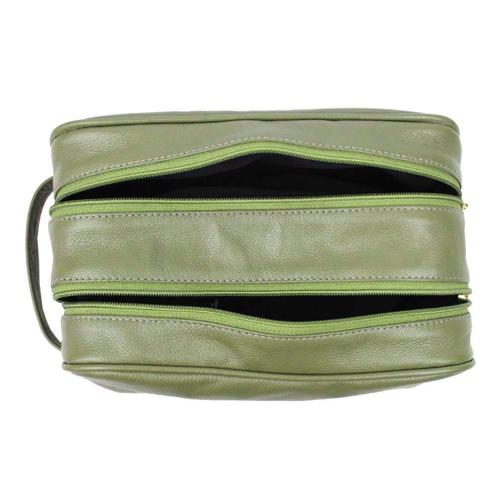 A necessaire Hugo é ideal para quem gosta de viajar com tudo organizado. É feita toda em couro 100% legítimo e possui três compartimentos independentes fechados com zíperes. Pode ser personalizada com suas iniciais.