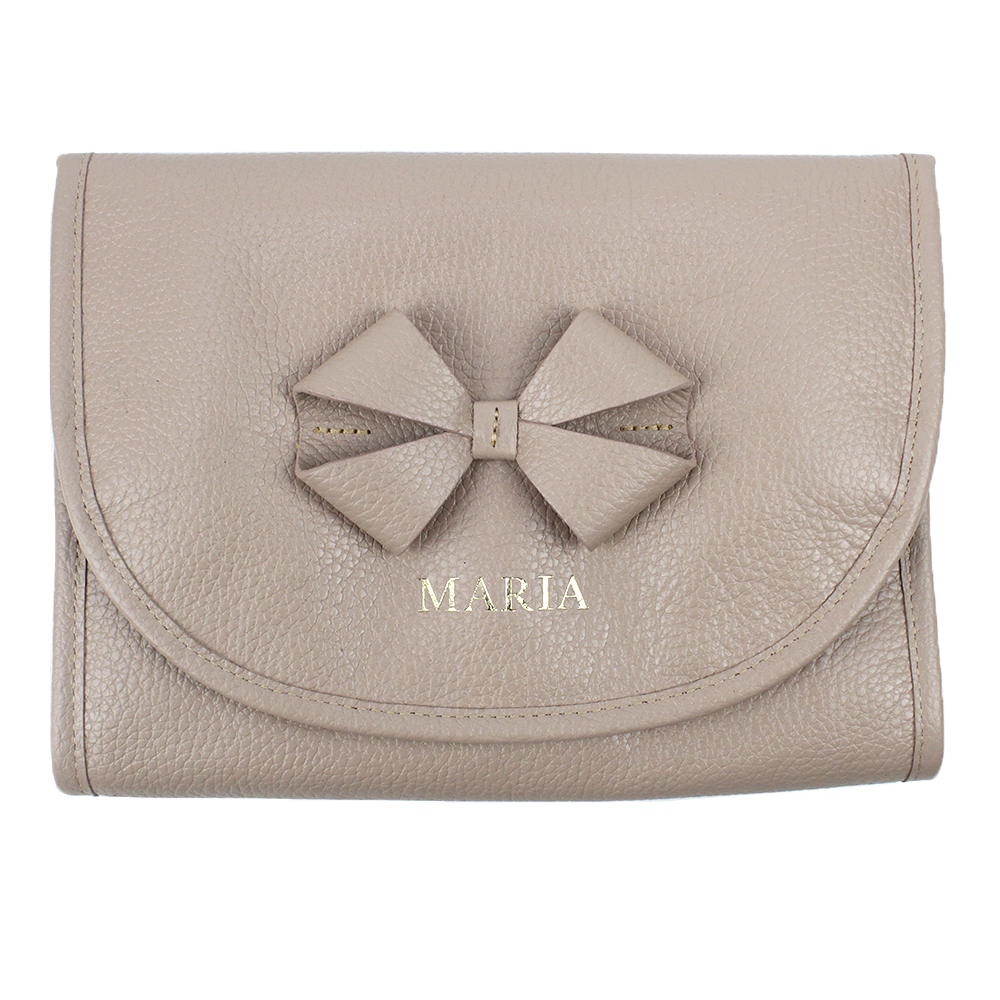 É toda feita em couro 100% legítimo e super leve para transporte. Ainda pode ser personalizada com as iniciais da criança.