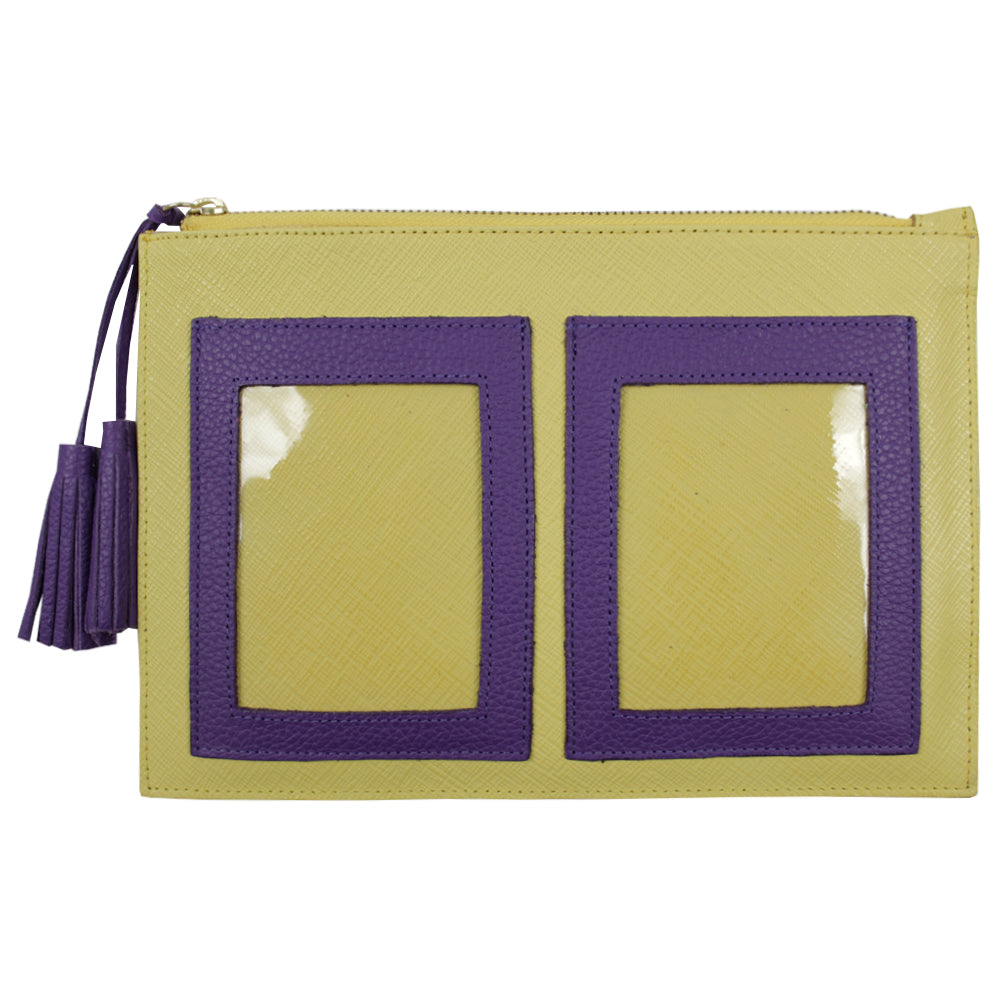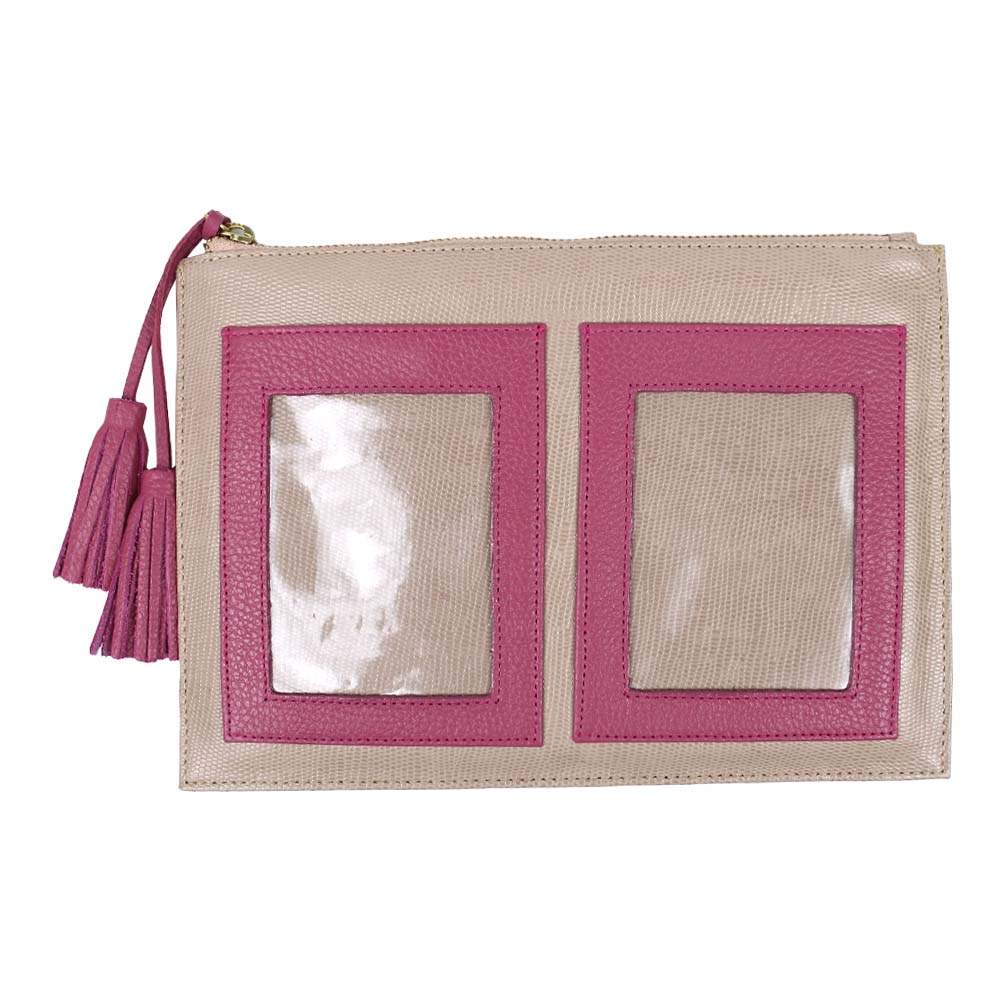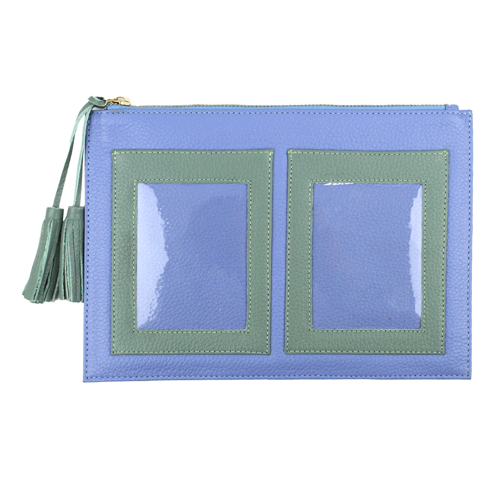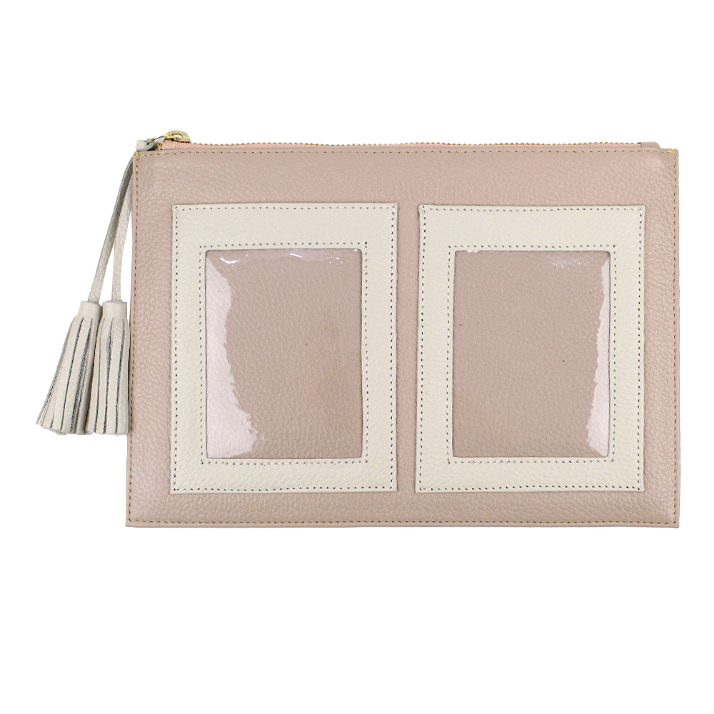Porta documentos tipo necessaire com espaço exterior para dois porta passaportes.
