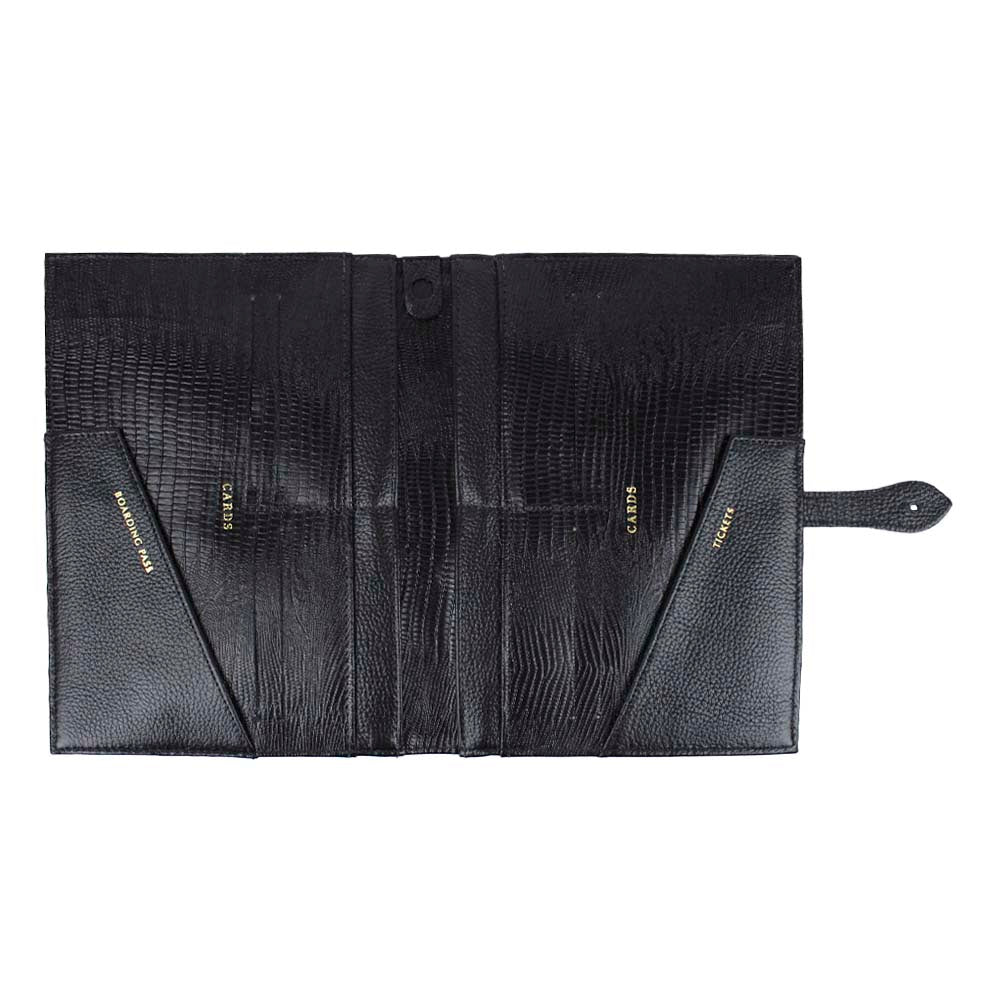 O family travel folder é um organizador de viagem super completo, ideal para viagens em família. Possui compartimentos individuais para guardar 8 passaportes, identificados pela inicial de cada passageiro. Além dos passaportes, ainda conta com compartimentos para guardar papéis e documentos de viagem, assim como específicos para tikets e boarding pass. Tem também espaço para caneta, sempre útil em qualquer viagem e um bolso externo. O travel folder é todo feito em couro 100% legítimo.