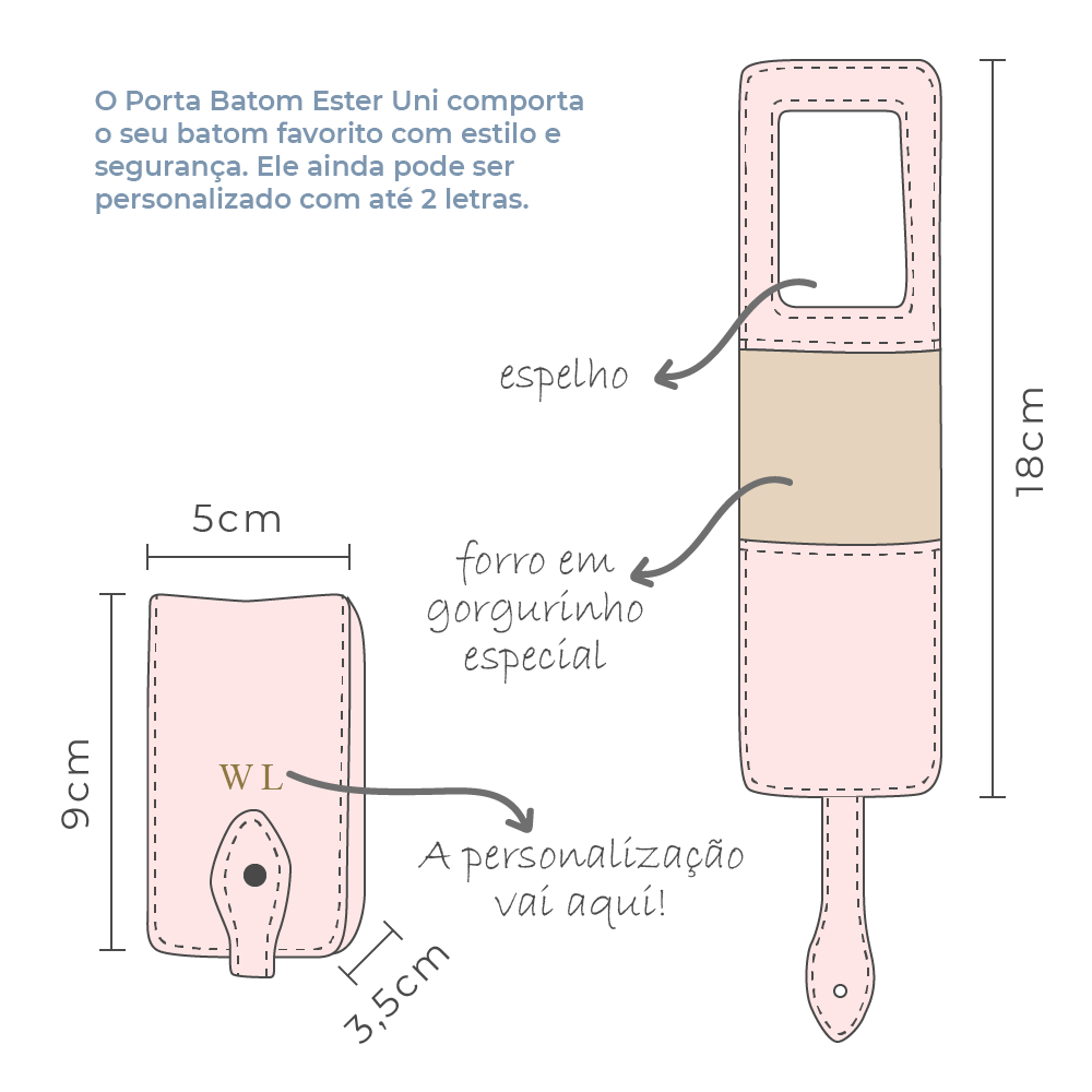 O Porta Batom Ester Uni é um produto super compacto, especialmente desenvolvido para caber na sua bolsa do dia-a-dia e guardar seu batom favorito com segurança, e ainda garantir que você sempre tenha um espelhinho à mão!