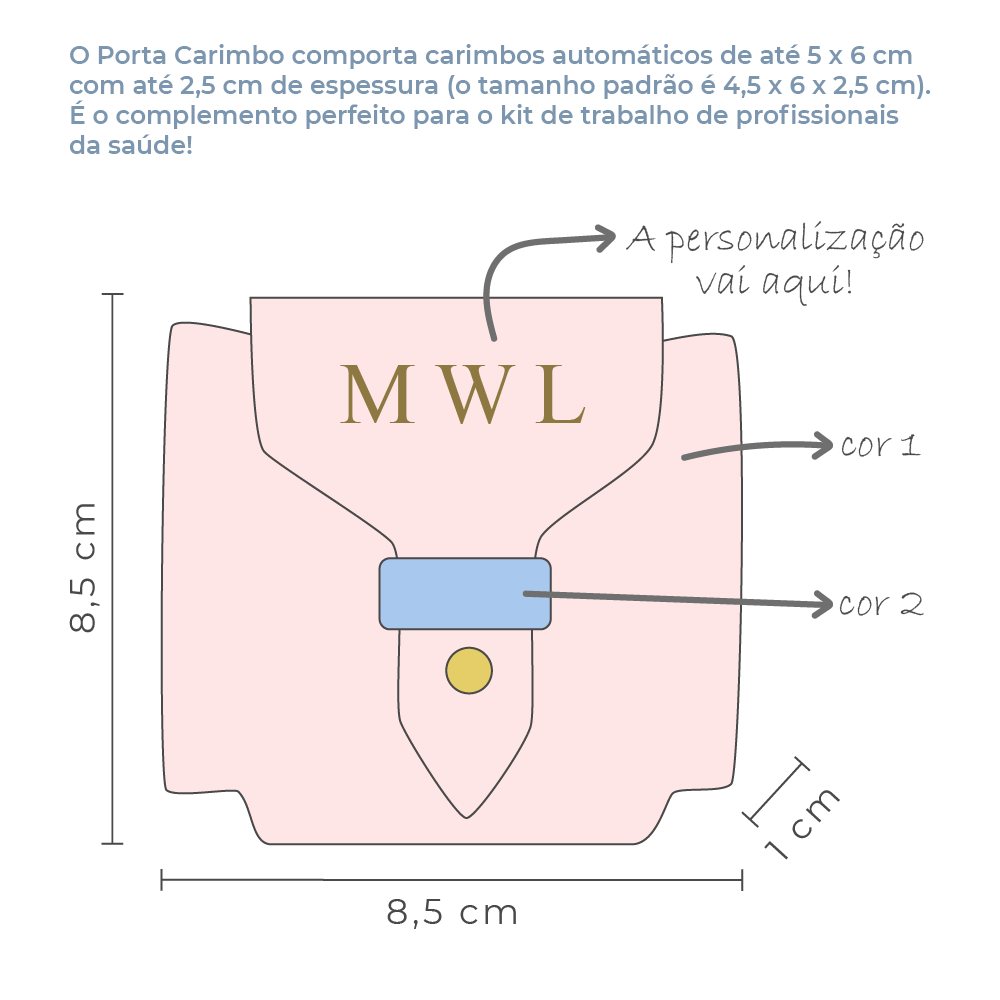 O Porta Carimbo transporta com segurança e estilo os carimbos automáticos, muito utilizados por profissionais da saúde. Ele foi feito para comportar carimbos de até 5 x 6 x 2,5 cm.