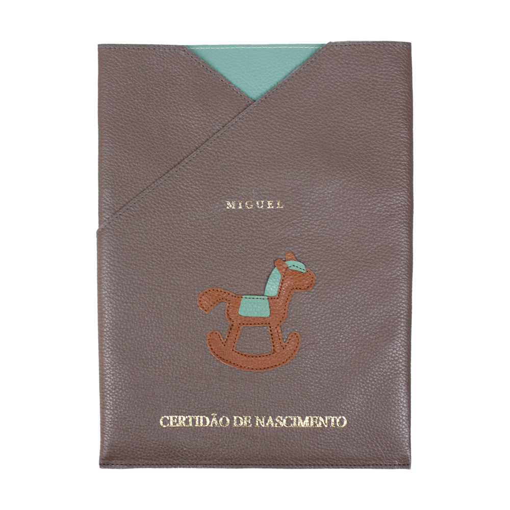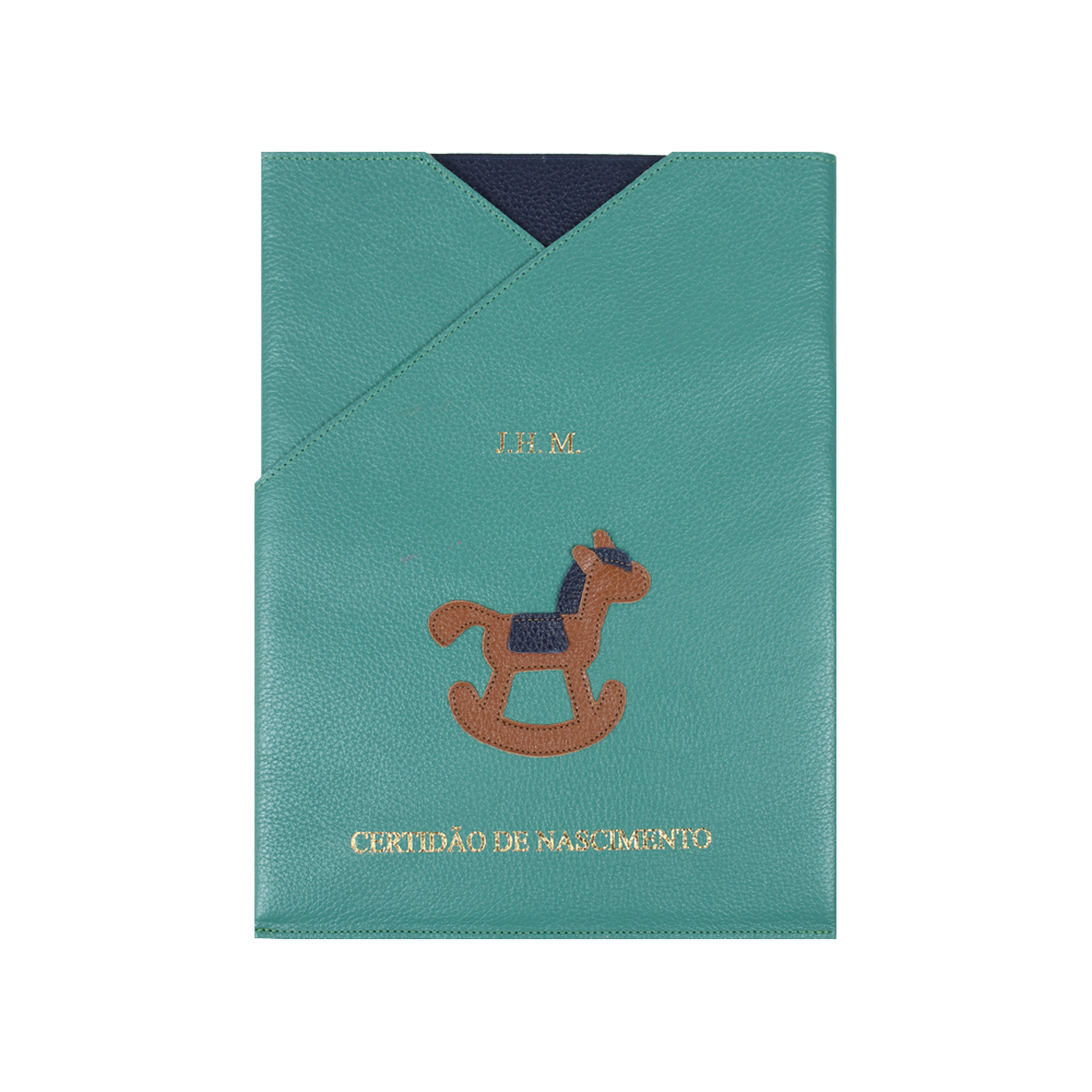O porta certidão foi desenvolvido para guardar o principal documento do seu pequeno. Além da certidão é possível guardar demais documentos ou o que mais desejar. É todo feito em couro 100% e ainda pode ser personalizado com as iniciais da criança