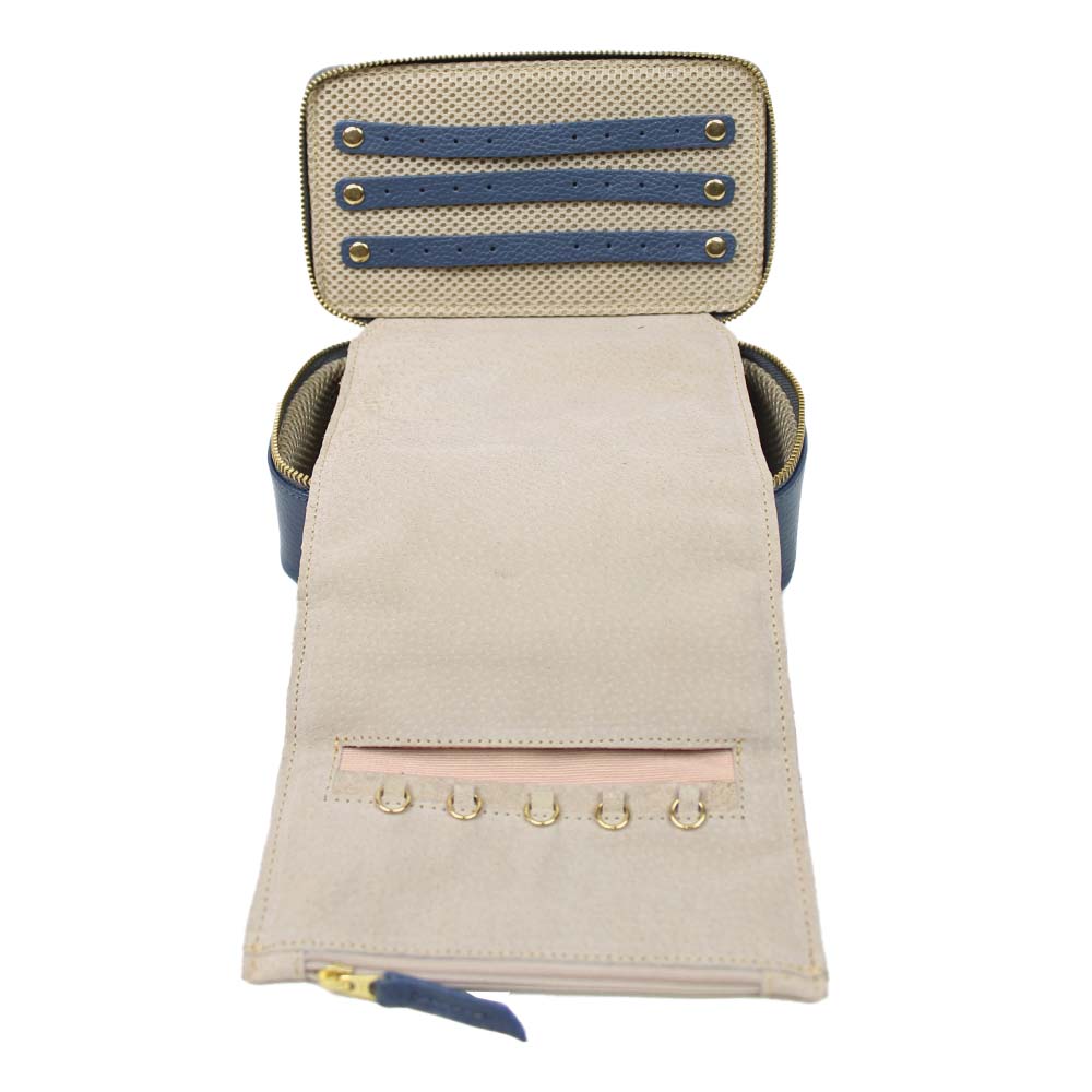 O porta joias Lourdes é ideal para quem gosta de carregar mais joias! É super prático e compacto. Comporta até 12 pares de brincos, 24 anéis, tem 5 lugares para correntinhas e mais 3 bolsos com zíper para relógios, pulseiras, colares. Além disso ainda acompanha um cadeado e pode ser personalizado com suas iniciais. É feito em couro 100% legítimo e forrado com tecido especial e camurça.