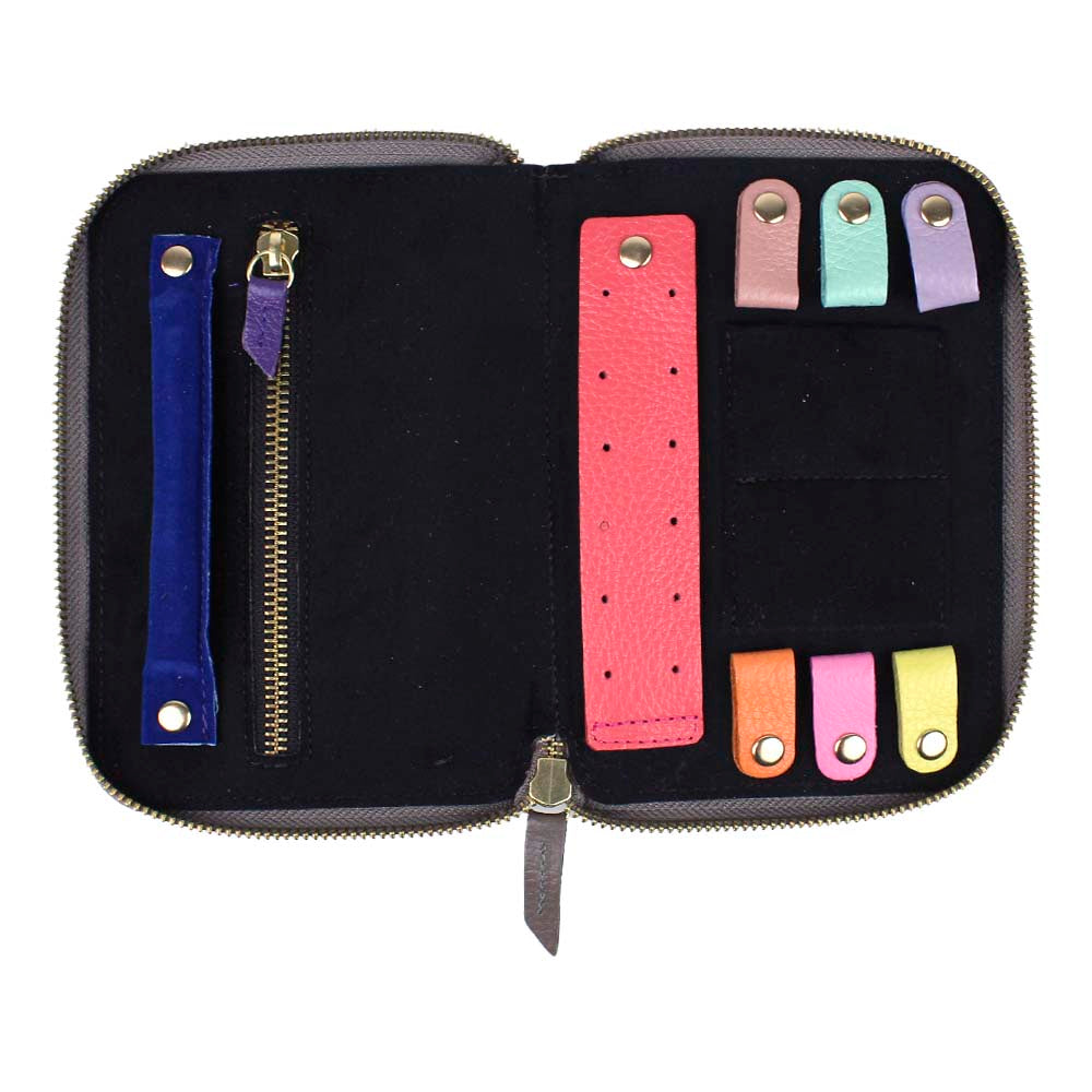 viagens, quanto para deixar suas joias organizadas em casa. Possui bolso interno com zíper e é feito em