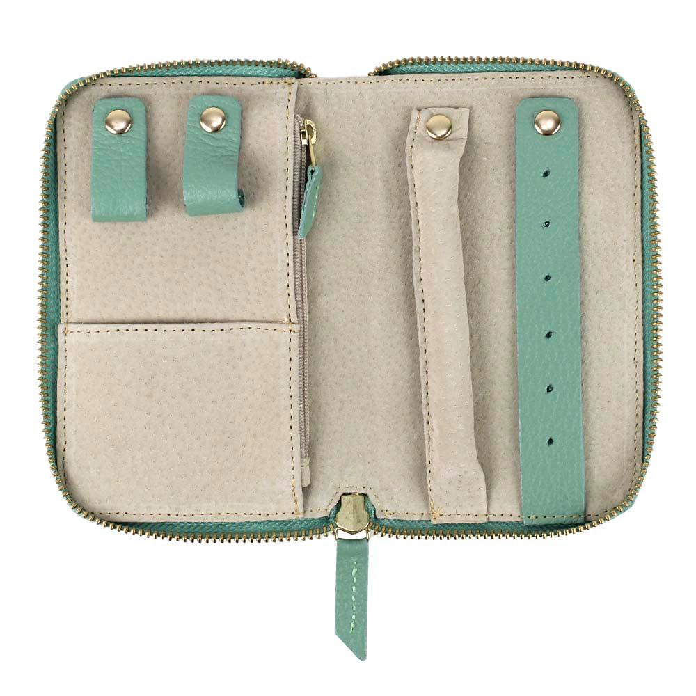 O Mini Porta Joias é todo feito em couro 100% legítimo e internamente todo feito em camurça. perfeito para levar em bolsas e em viagens. possui compartimento para colares, brincos, anéis e um pequeno bolso multiuso e tem fechamento com zíper o que proporciona maior segurança.. tem o tamanho aproximado de uma carteira média de dinheiro.