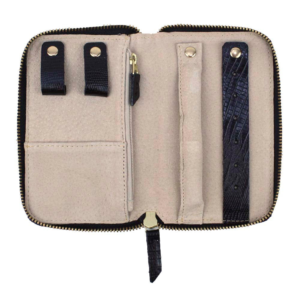 O Mini Porta Joias é todo feito em couro 100% legítimo e internamente todo feito em camurça. perfeito para levar em bolsas e em viagens. possui compartimento para colares, brincos, anéis e um pequeno bolso multiuso e tem fechamento com zíper o que proporciona maior segurança.. tem o tamanho aproximado de uma carteira média de dinheiro.