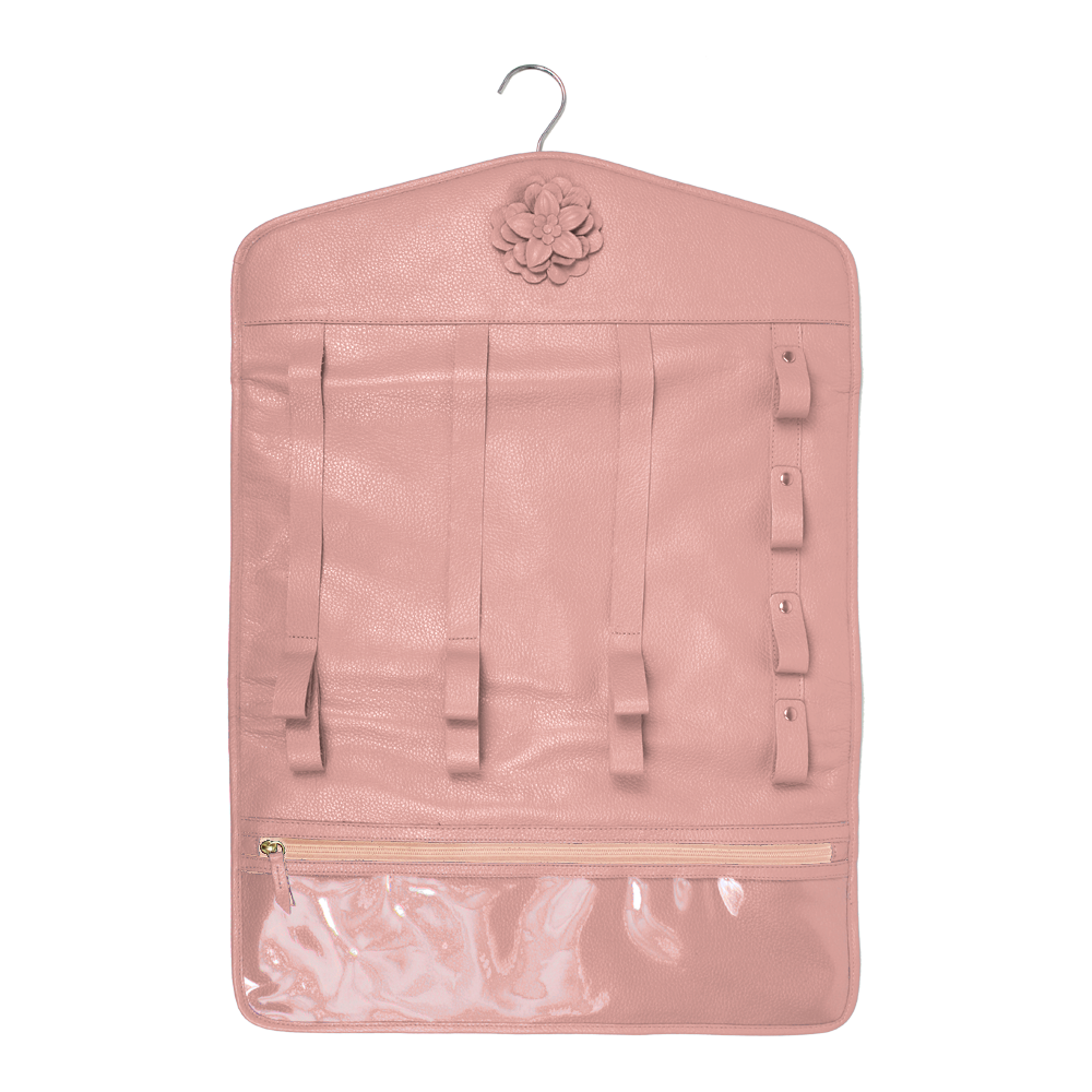 Possui espaço para diversos lacinhos que são presos por presilhas, grampinhos, como também espaço para tiaras e arquinhos, além de ter compartimentos para gominhas e demais artigos para cabelo.