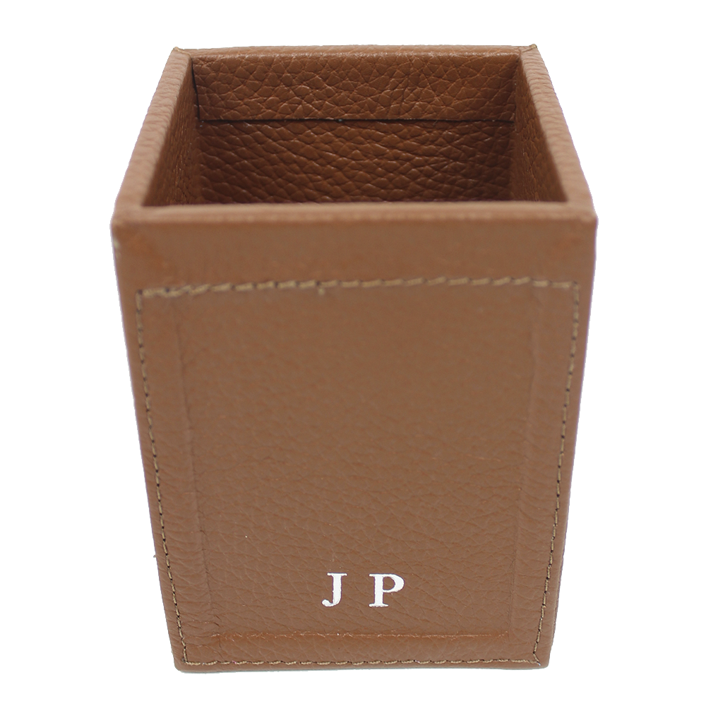 Ideal para organizar lápis, canetas, lapiseiras, tesouras, réguas é demais materiais de escritório. É todo feito em couro 100% legítimo e ainda pode ser personalizado com suas iniciais.
