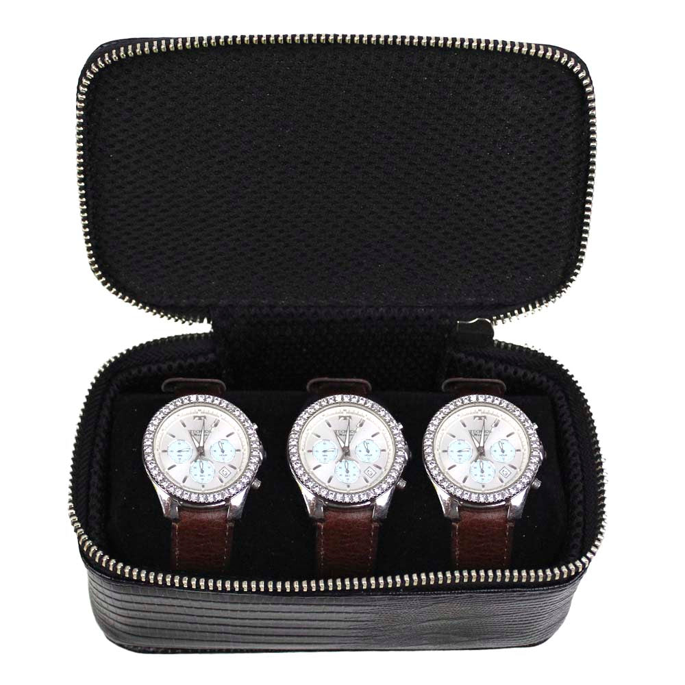 O Porta Relógio Triplo é confeccionado em Couro 100% Legítimo, com acabamentos internos diferenciados e pensados especialmente para proteger os seus relógios, seja para armazenamento, seja para transporta em viagens e passeios. Fechamento completo em zíper, acompanha a almofada interna e comporta tranquilamente 3 relógios de forma segura e estilosa.
