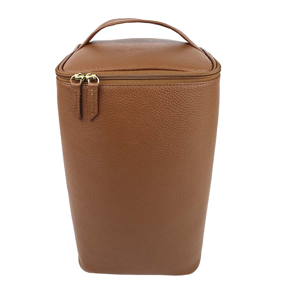 Este produto é feito com Couro 100% Legítimo, forrado internamente com nylon e camada de proteção térmica, para garantir que seus vinhos sejam transportados sem esquentar. Ele ainda conta com um bolso na tampa para levar seu abridor, cortador de lacre, anel salva gotas, etc.